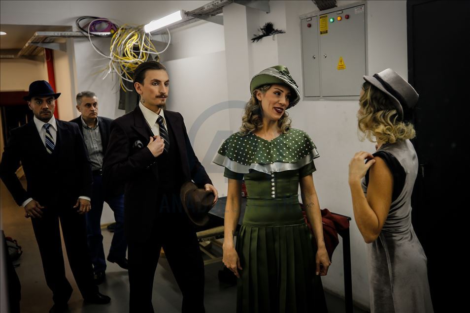 Ankara Devlet Opera ve Balesi Modern Dans Topluluğunca sahnelenen "Gangster" müzikalinin dünya prömiyeri yapıldı. Temsil öncesinde dansçılar, sahne arkasında hazırlıklarını yaptı.