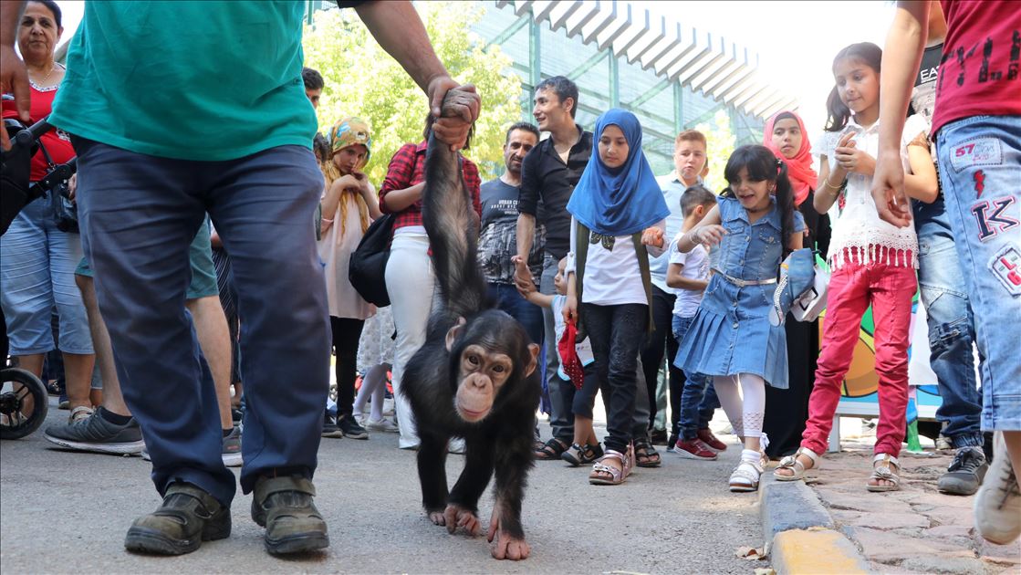 Büyüklüğü ve barındırdığı türler bakımından dünyanın önde gelen hayvanat bahçelerinden Gaziantep Hayvanat Bahçesi'nde bayram tatili dolayısıyla ziyaretçi yoğunluğu yaşanıyor. Sıcaklıkların 40 dereceyi aştığı kentte yerli ve yabancı turistler, sıcak havaya aldırış etmeden günün her saatinde hayvanat bahçesinde yoğunluk oluşturuyor. Serinlemesi için verilen dondurmayı yiyen Hayvanat Bahçesinin maskotu şempanze "Can", ziyaretçilerin ilgisini çekti. ( Adsız Günebakan - Anadolu Ajansı )Adsız Günebakan