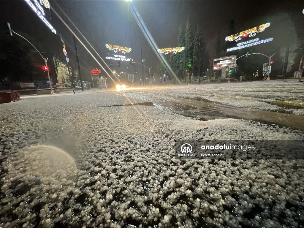 Gaziantep'te sağanak ve dolu, hayatı olumsuz etkiledi. ( Kerem Kocalar - Anadolu Ajansı )Kerem Kocalar