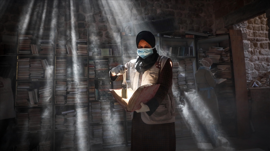 Enkaz altında kalan, yıpranan ve sayfaları zarar gören eserleri titizlikle restore etmeye çalışan gönüllüler, Gazze’nin kültürel, edebi ve bilimsel mirasını korumayı amaçlıyor.Abdalhkem Abu Riash