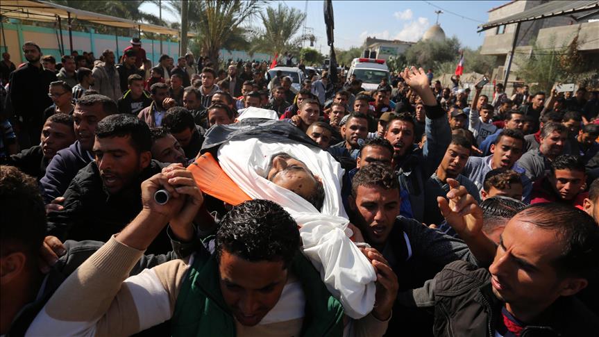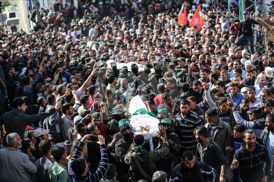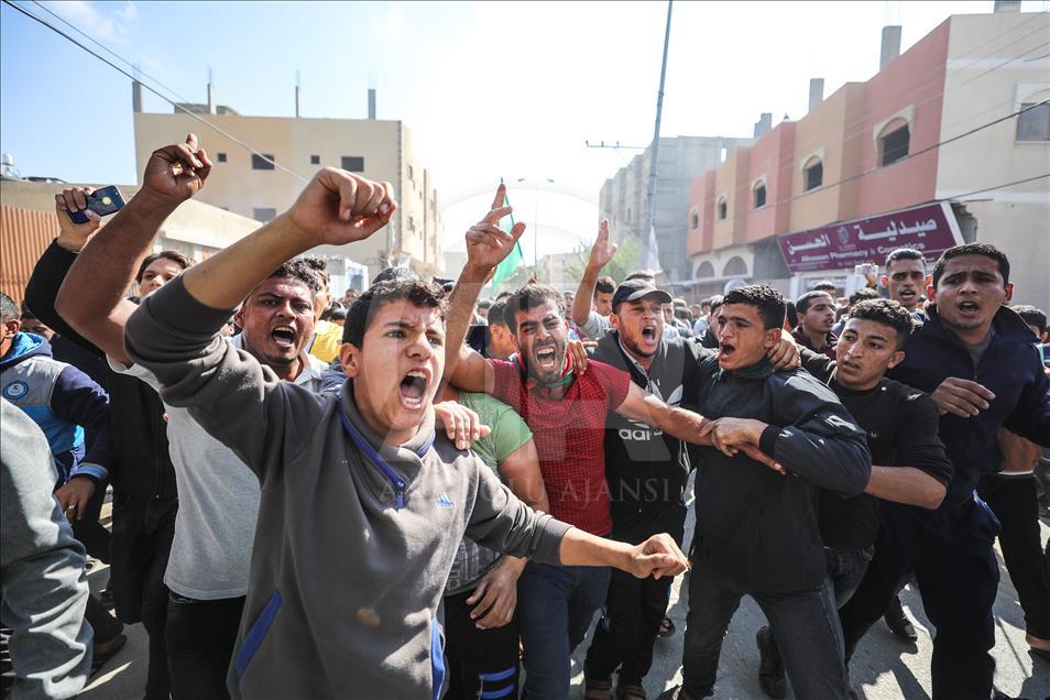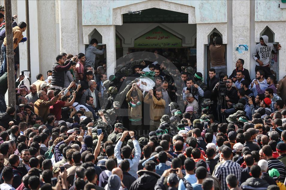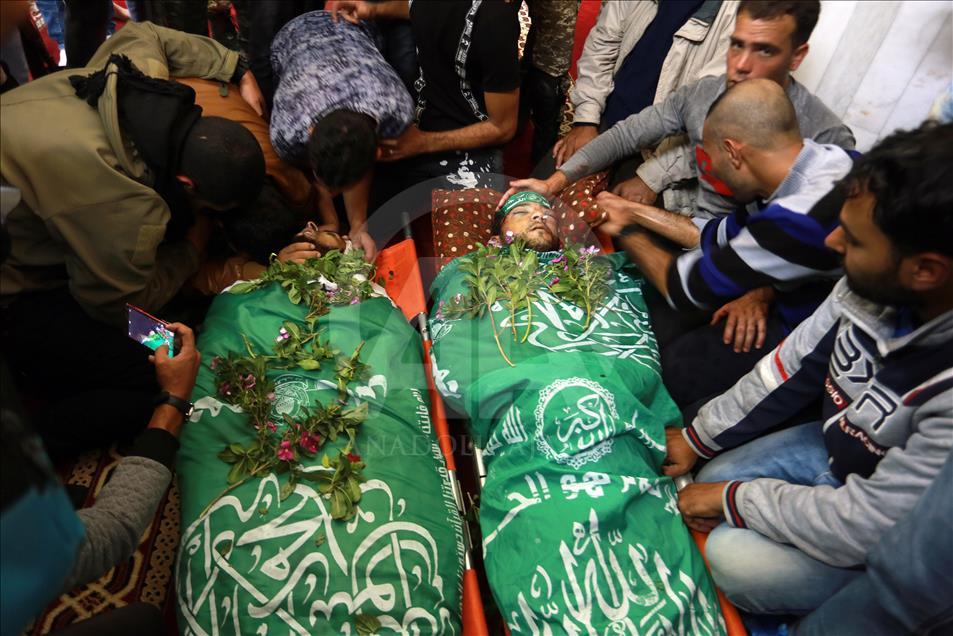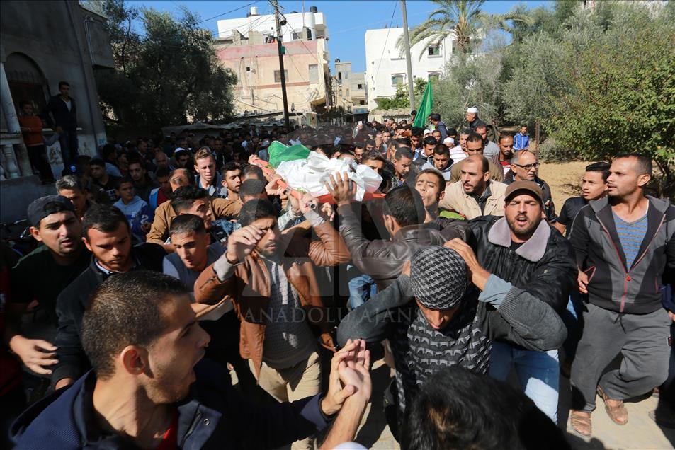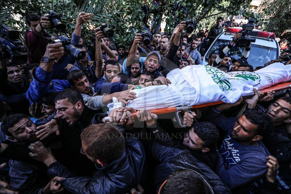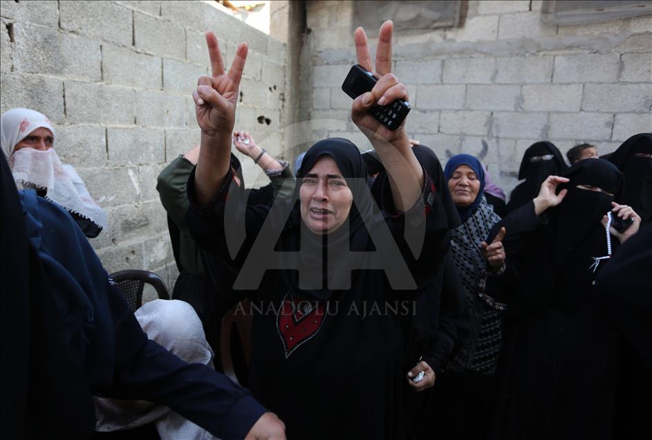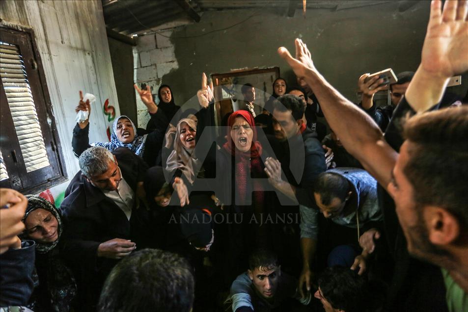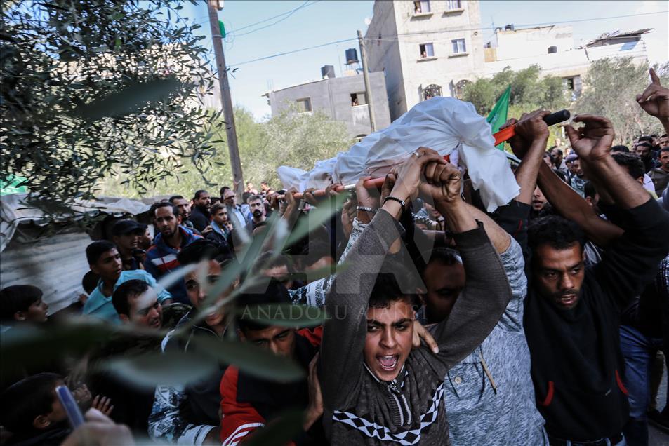 İsrail'in Gazze'nin Han Yunus kentinde düzenlediği saldırıda şehit olan Filistinli Mustafa Hasan Ebu Ude ve Muhammed Atallah Musabb için cenaze töreni düzenlendi. Şehitlerin yakınları, cenaze töreninde üzüntü yaşadı. ( Abed Rahim Khatib - Anadolu Ajansı )Abed Rahim Khatib