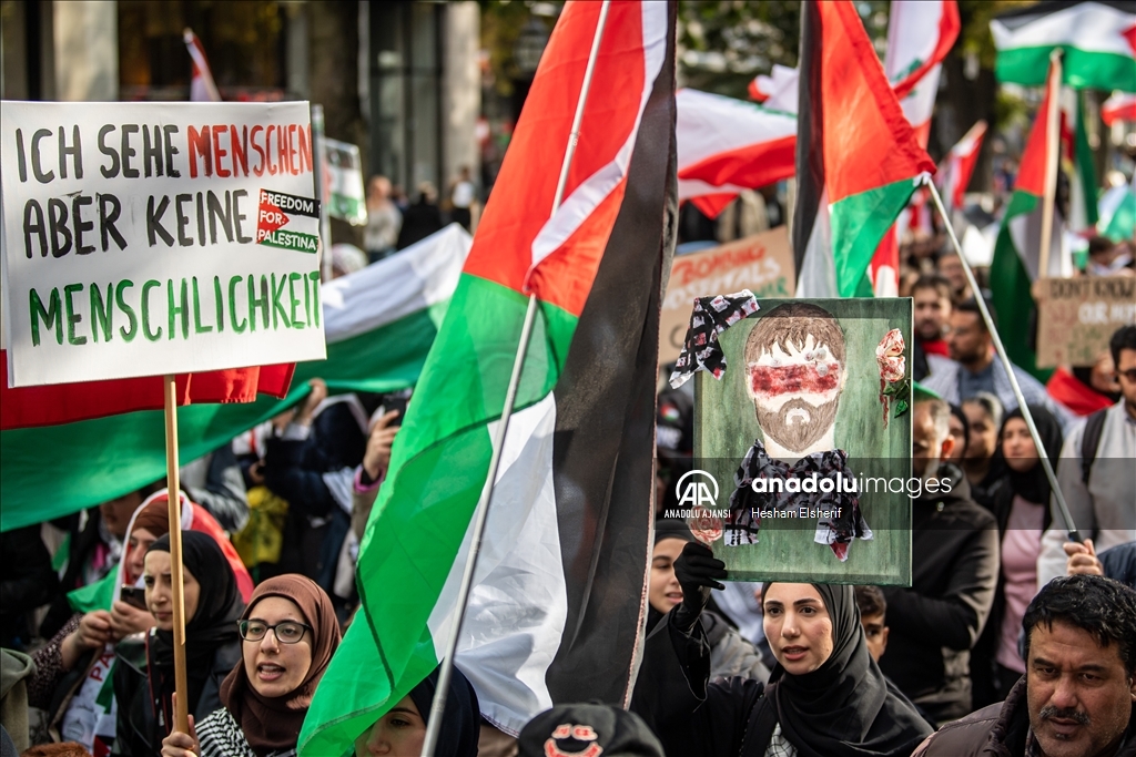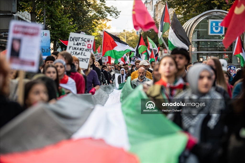 Almanya'nın Düsseldorf kentinde, İsrail'in Gazze'ye yönelik saldırılarının birinci yılı dolayısıyla protesto yürüyüşü düzenlendi.Hesham Elsherif