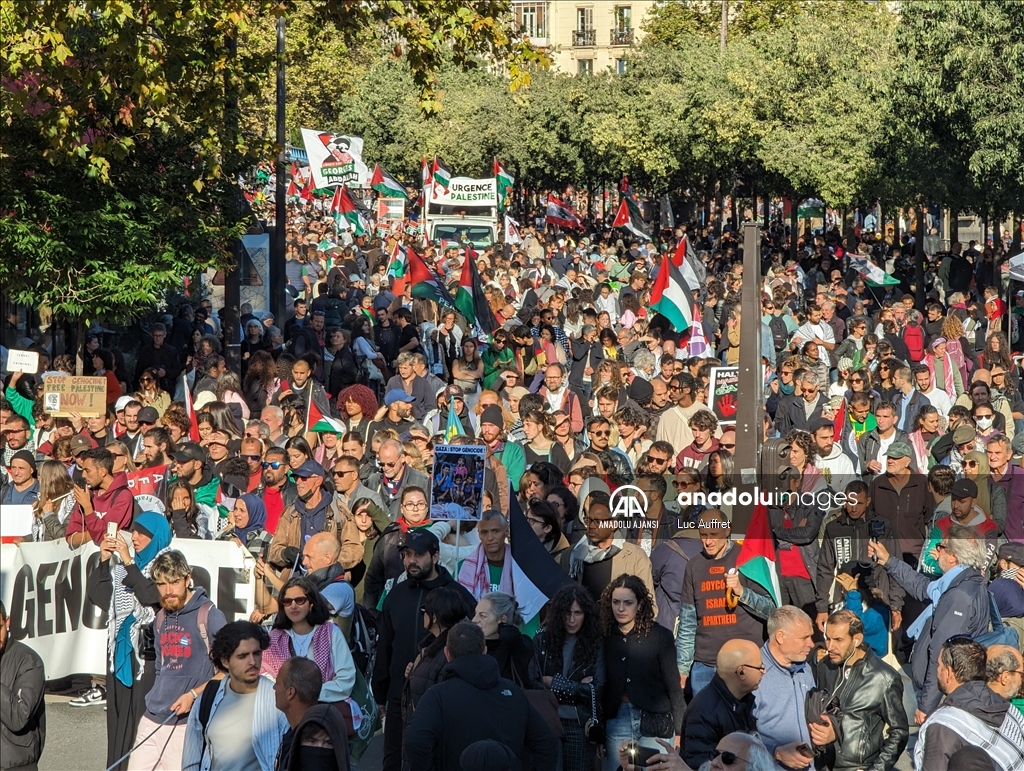 Fransa'nın başkenti Paris'te binlerce kişi, İsrail'in saldırılarına maruz kalan Filistin ve Lübnan'a destek için gösteri düzenledi.Luc Auffret