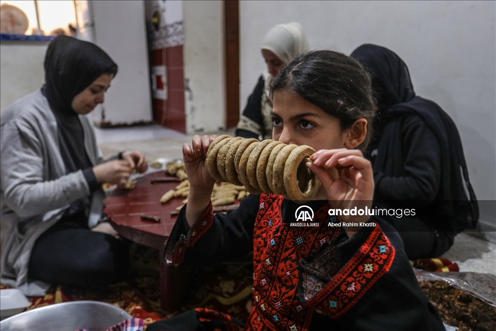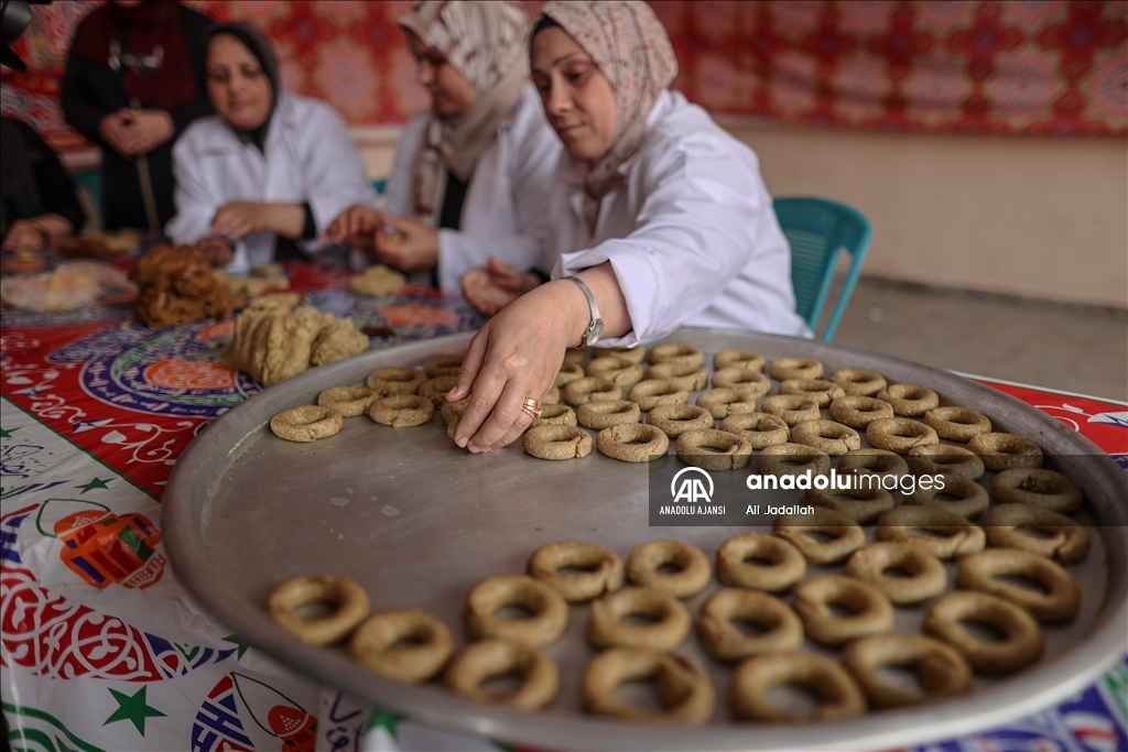 Abluka altındaki Gazze Şeridi'nde bir araya gelen yetim anneleri, Ramazan Bayramı için hazırlıklara başladı. Emel Yetimler Derneği'nde toplanan anneler, geleneksel bayram ikramlarından zeytinyağlı kahke yaptı. ( Ali Jadallah - Anadolu Ajansı )Ali Jadallah