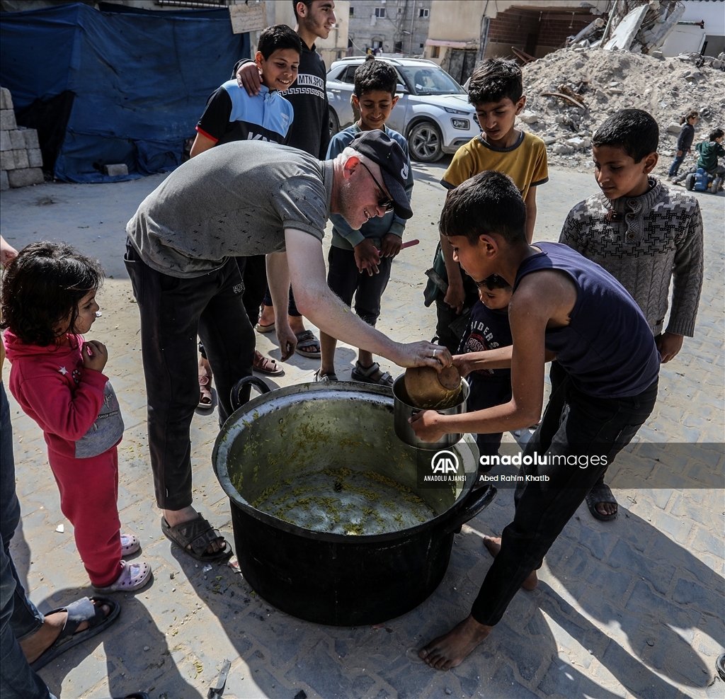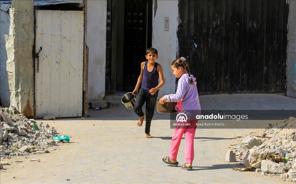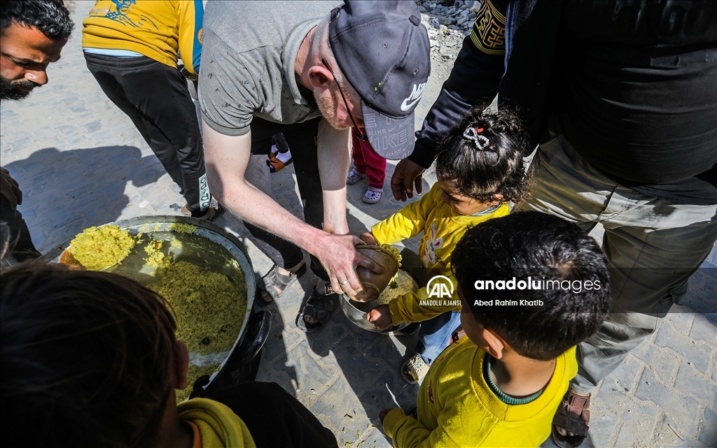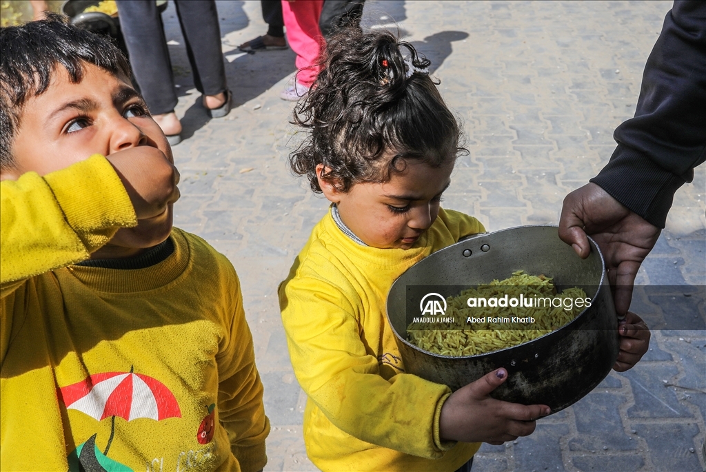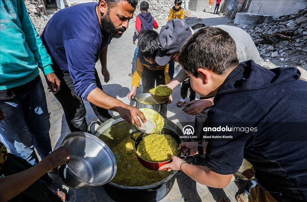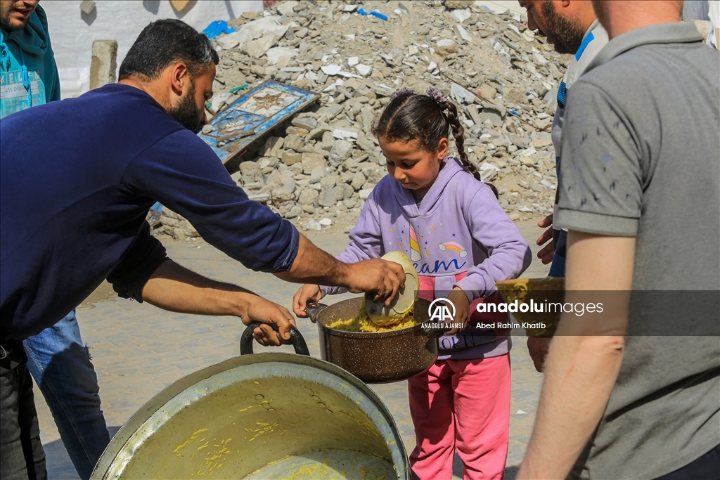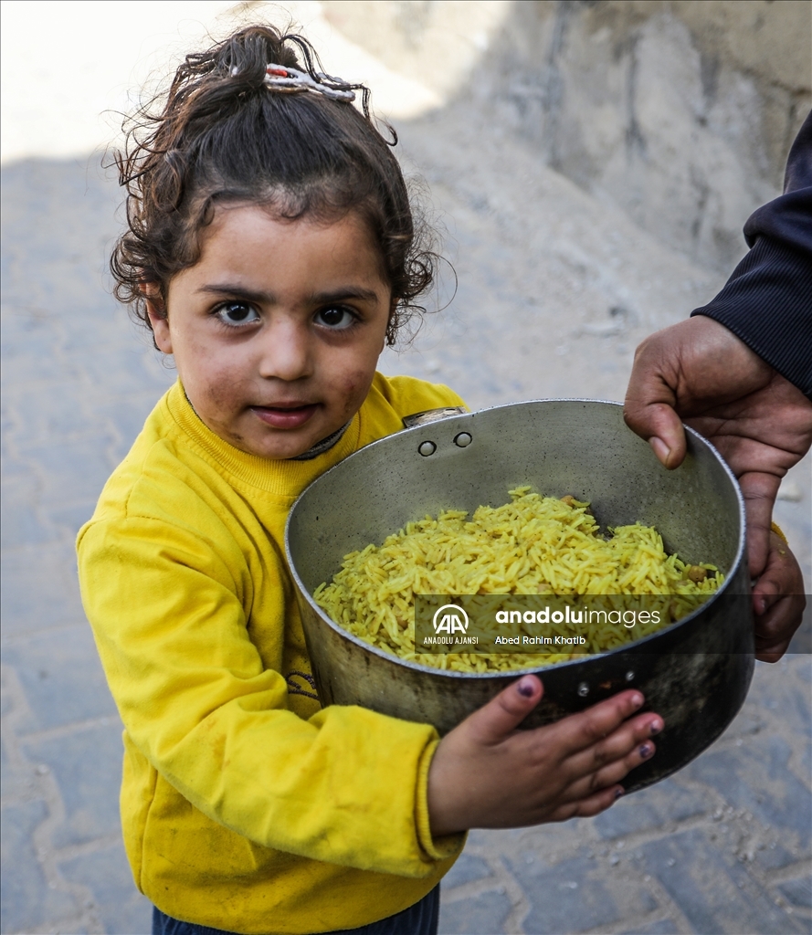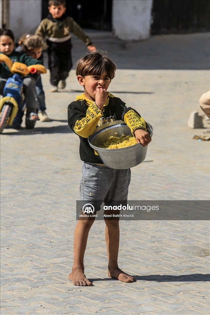 Gazze'nin güneyindeki Han Yunus Mülteci Kampı'ndaki Filistinlilere, Ramazan ayı dolayısıyla bir hayır kurumu tarafından sıcak iftar yemeği dağıtıldı. (Abed Rahim Khatib - Anadolu Ajansı)Abed Rahim Khatib