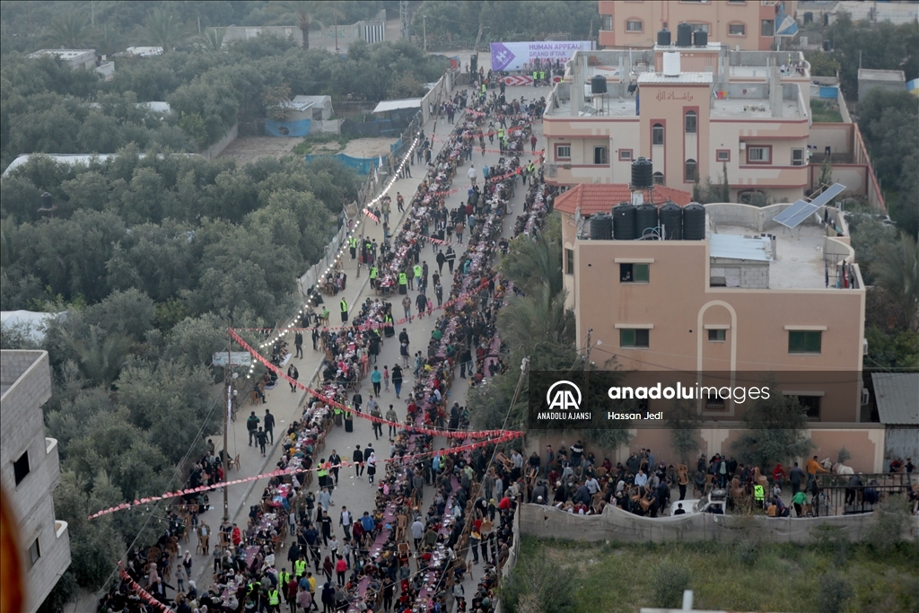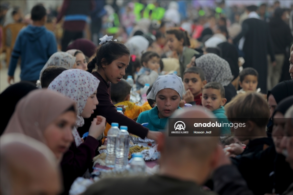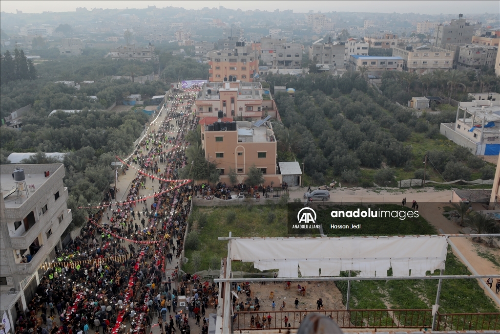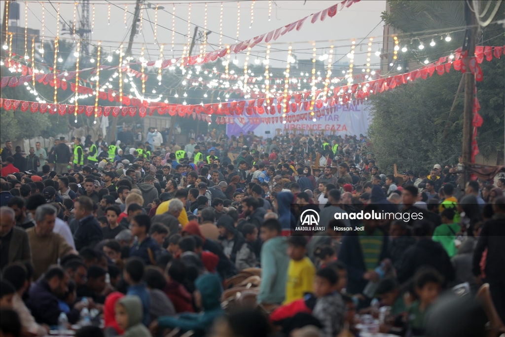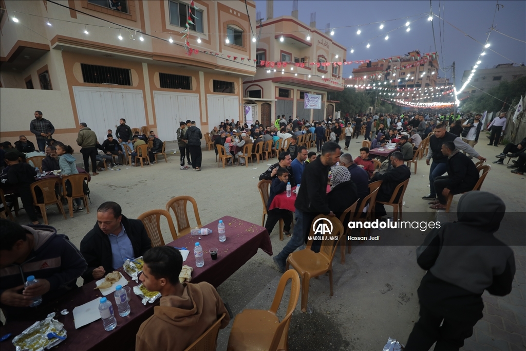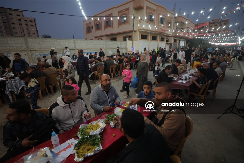 Gazze Şeridi'nin orta kesimindeki Nasirat Mülteci Kampı'nda toplu iftar programı düzenlendi.