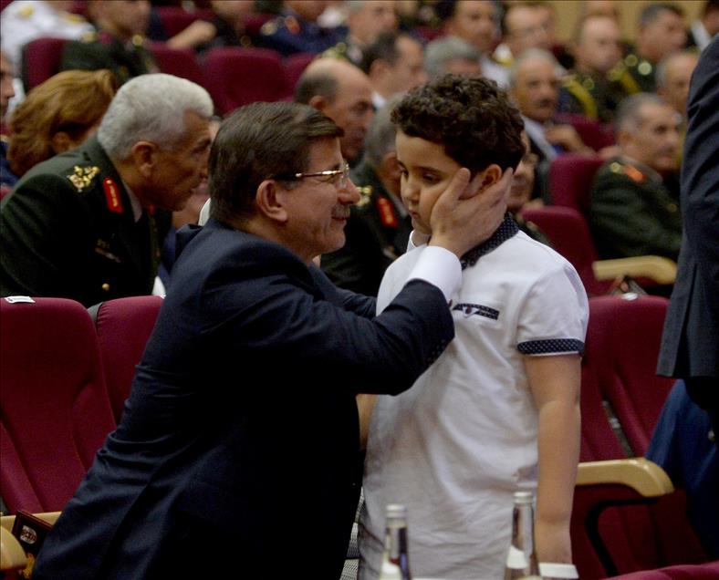 Genelkurmay Başkanlığı Devir Teslim Töreni, Genelkurmay Başkanlığı Atatürk Kültür Sitesi'nde yapıldı. Törene katılan Başbakan Ahmet Davutoğlu bir çocuğu sevdi. (Volkan Furuncu - Anadolu Ajansı)Volkan Furuncu