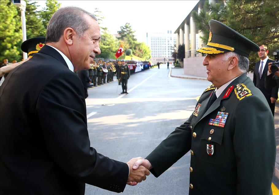 Genelkurmay Başkanlığı Devir Teslim Töreni, Genelkurmay Başkanlığı Atatürk Kültür Sitesi'nde yapıldı. Törene Cumhurbaşkanı Recep Tayyip Erdoğan, TBMM Başkanı İsmet Yılmaz ile Başbakan Ahmet Davutoğlu katıldı. (Volkan Furuncu - Anadolu Ajansı)Volkan Furuncu