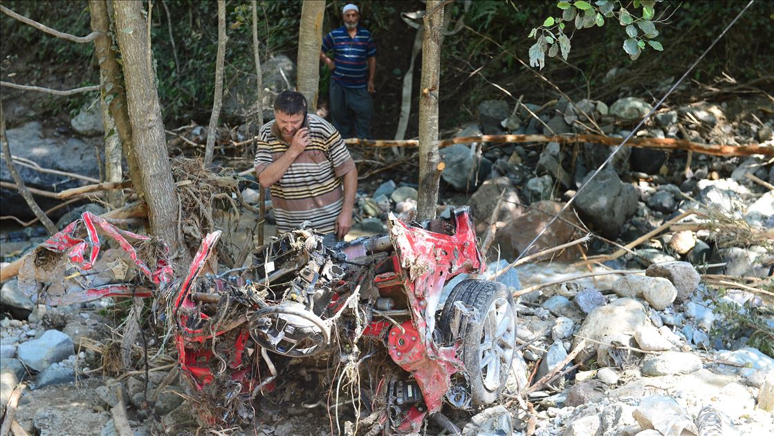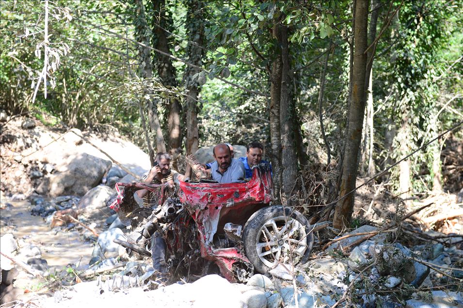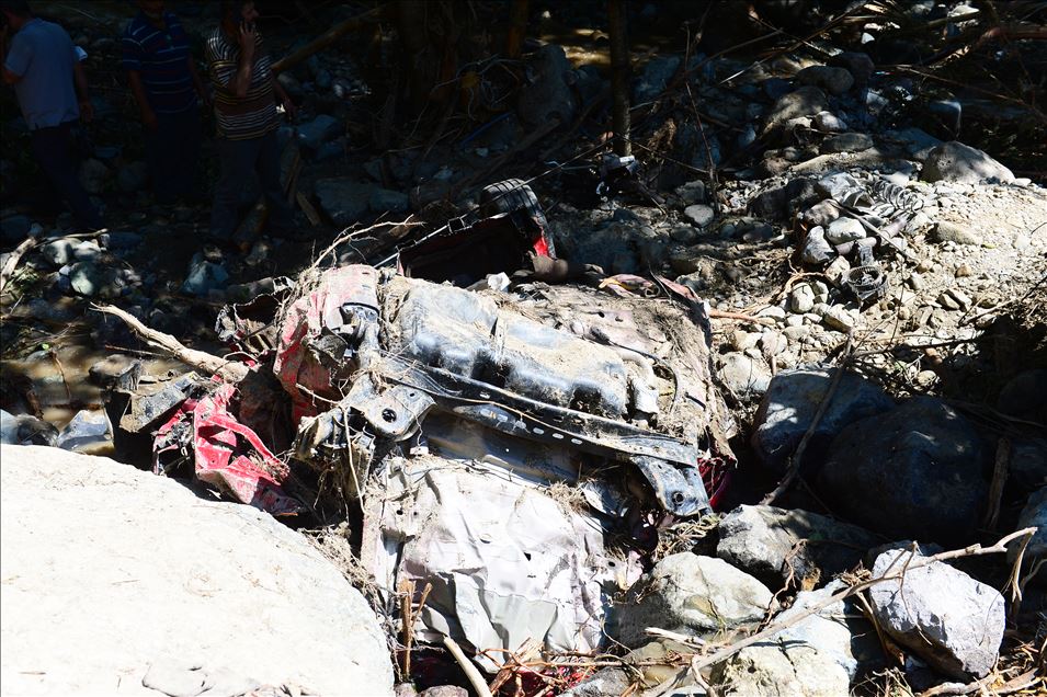 Giresun'da selde kaybolan aileyi arama çalışmaları devam ediyor. Osmaniye köyünde araçlarıyla suya kapılarak kaybolan Emine ve Davut Akgün'ü bulmak için Batlama ve Çal derelerinde arama çalışması yapılıyor. Fotoğrafta ailenin Çal deresine sürüklenen aracı görülüyor. ( Gültekin Yetgin - Anadolu Ajansı )Gültekin Yetgin