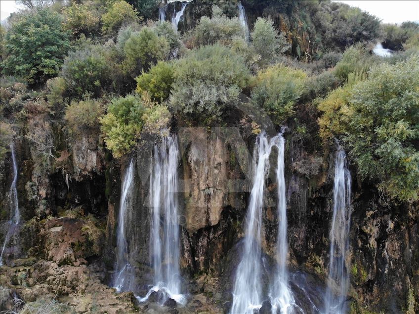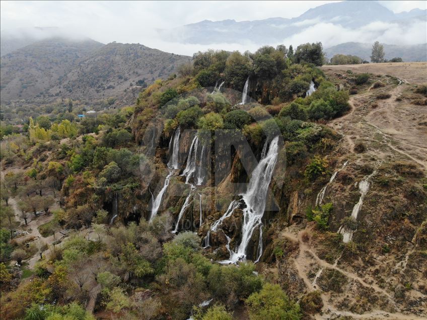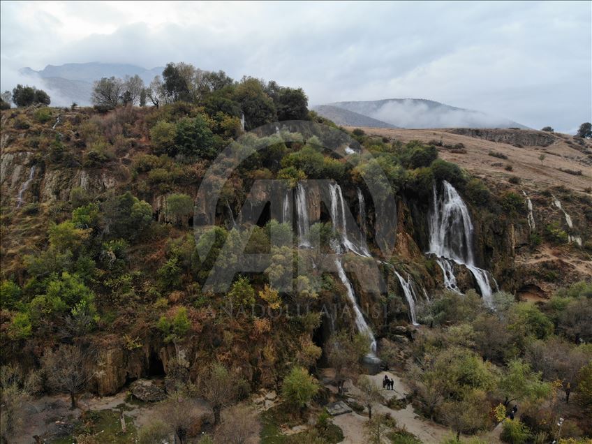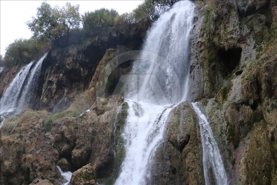 Erzincan'da doğal güzelliğiyle öne çıkan Girlevik Şelalesi, sonbaharda sararan yaprakların oluşturduğu renk cümbüşü eşliğinde ziyaretçilerini cezbediyor. ( Kemal Özdemir - Anadolu Ajansı )Kemal Özdemir