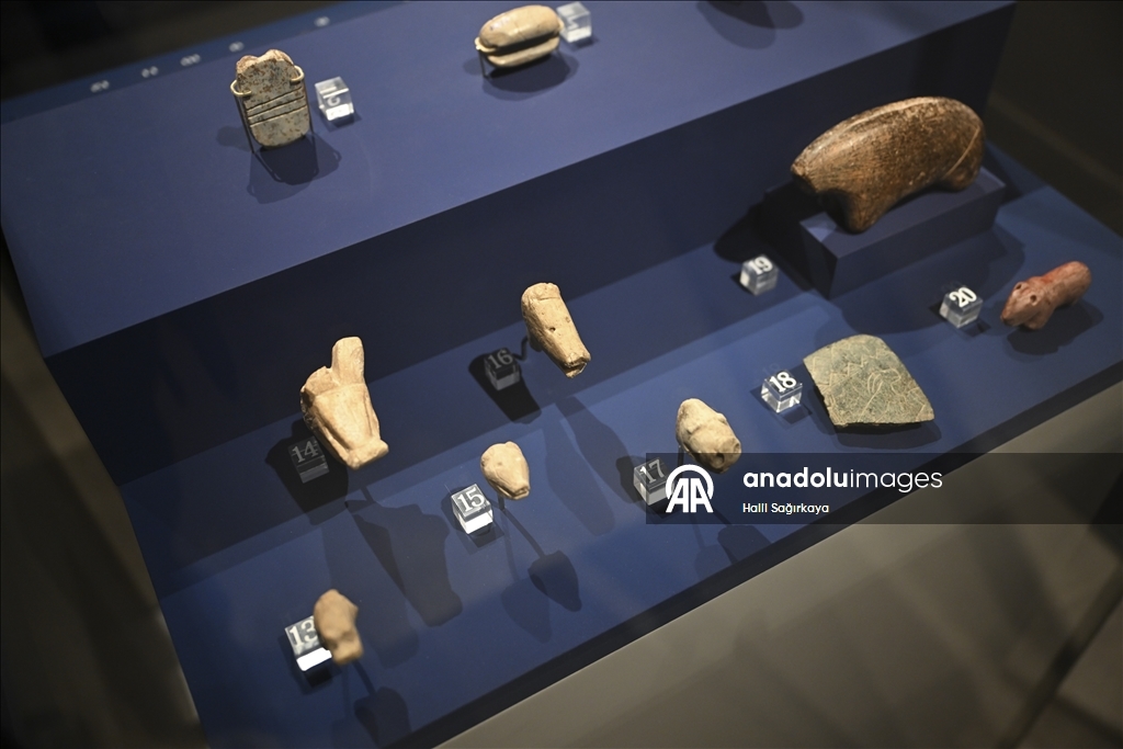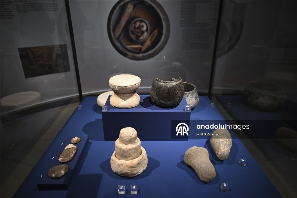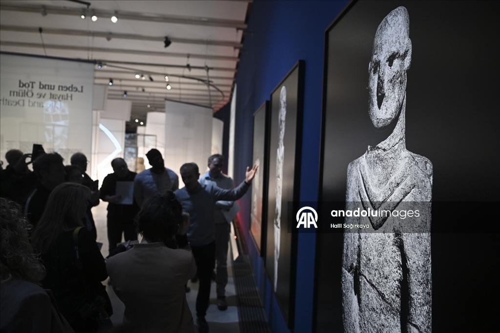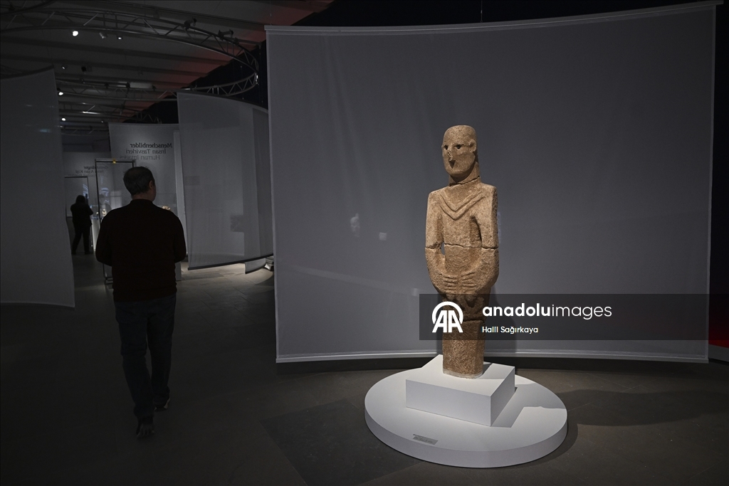 Açılış öncesinde basın mensularına gezdirilen ve toplam 8 bölümden oluşan sergi, erken yerleşik toplulukların sanatsal ifadelerini doğumdan günlük yaşama, ölüme kadar farklı yaşam alanlarında sunacak. (Halil Sağırkaya - Anadolu Ajansı)Halil Sağırkaya