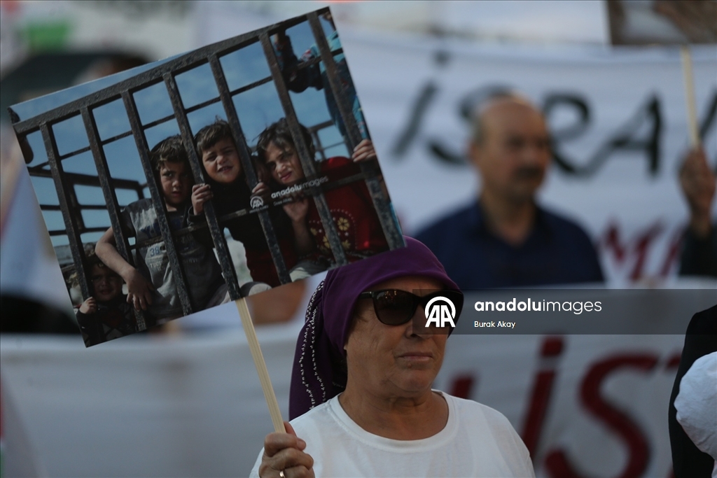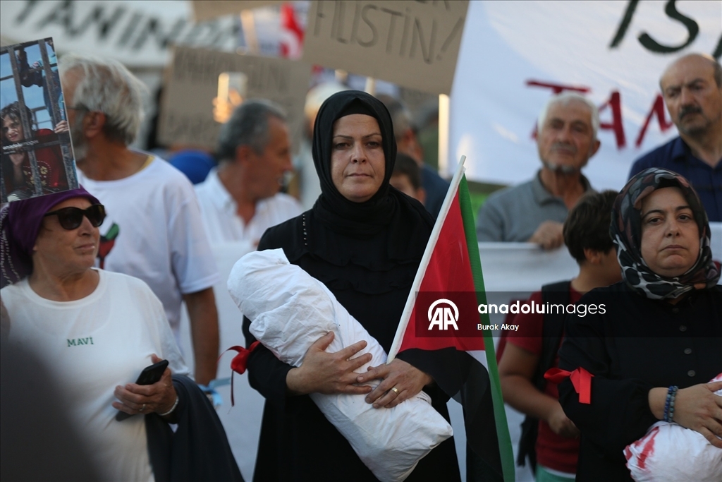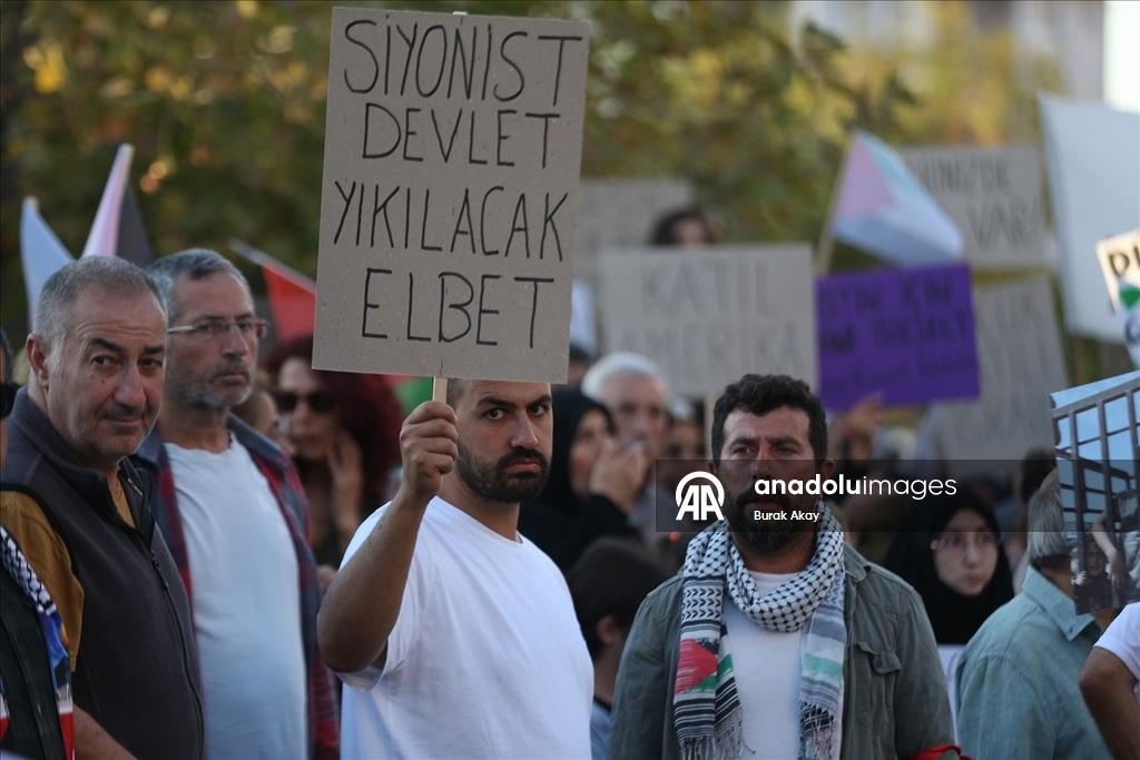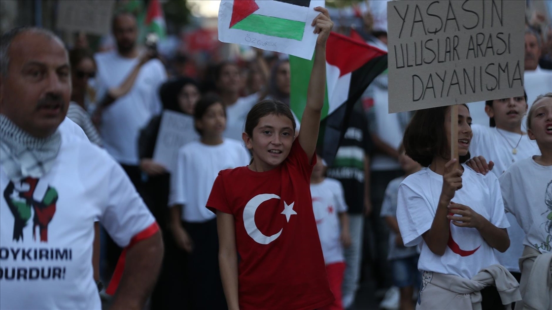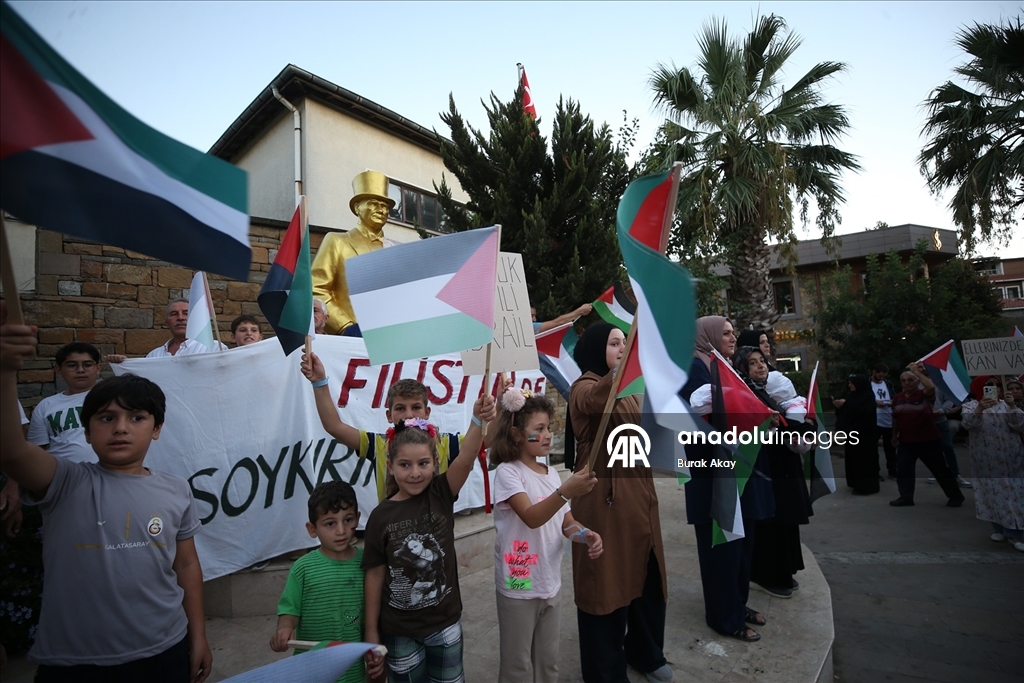 Türkiye'nin en büyük adası olan Çanakkale'nin Gökçeada ilçesinde bir araya gelen binlerce kişi, İsrail'in Filistin'e karşı yürüttüğü soykırımı protesto etti.
