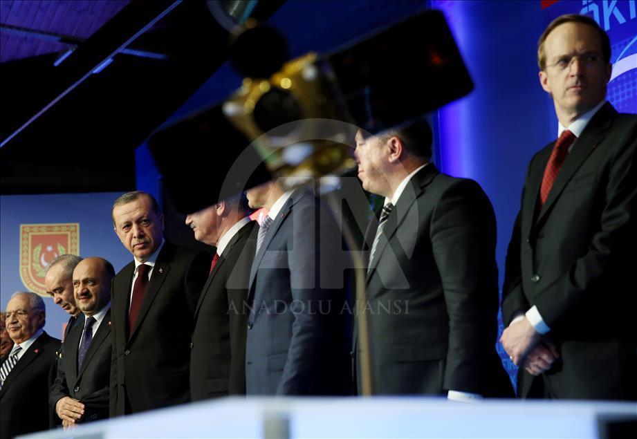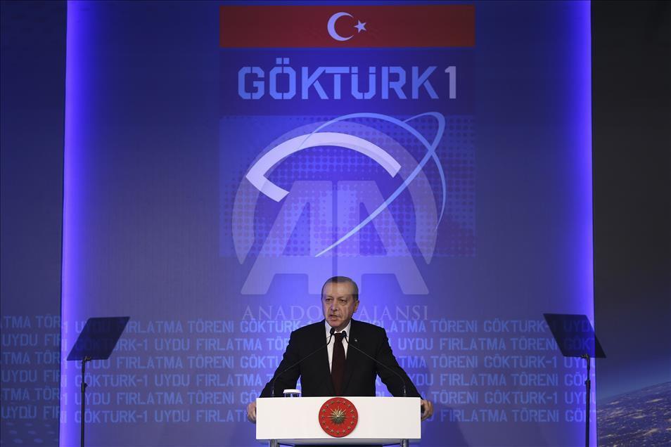 Cumhurbaşkanı Recep Tayyip Erdoğan, Hava Kuvvetleri Komutanlığı ve Savunma Sanayi Müsteşarlığı ev sahipliğinde Türk Havacılık ve Uzay Sanayi AŞ (TUSAŞ) Akıncı tesislerinde düzenlenen GÖKTÜRK-1 uydusunu faaliyete alma törenine katılarak konuşma yaptı. ( Gökhan Balcı - Anadolu Ajansı )Gökhan Balcı