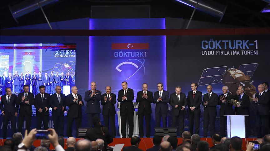 Cumhurbaşkanı Recep Tayyip Erdoğan, Hava Kuvvetleri Komutanlığı ve Savunma Sanayi Müsteşarlığı ev sahipliğinde Türk Havacılık ve Uzay Sanayi AŞ (TUSAŞ) Akıncı tesislerinde düzenlenen GÖKTÜRK-1 uydusunu faaliyete alma törenine katıldı. Törende, GÖKTÜRK-1 uydusunun fırlatma anı canlı izlendi. Törene, Milli Savunma Bakanı Fikri Işık (sağ 4),Hava Kuvvetleri Komutanı Orgeneral Abidin Ünal (sağ 5) ve Bilim, Sanayi ve Teknoloji Bakanı Faruk Özlü (sağ 2) de katıldı.