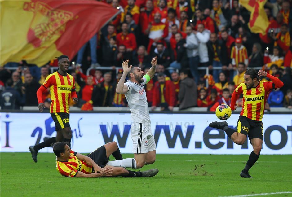 Süper Lig’in 19. haftasında Göztepe ile Beşiktaş, Göztepe’nin yeni stadı Gürsel Aksel Stadyumu’nun açılış maçında karşılaştı. Bir pozisyonda Beşiktaş’tan Burak Yılmaz (sağ 2) ile Göztepe’den Celso Borges Mora (sol 2) mücadele etti. Hakem Hüseyin Göçek bu pozisyon sonrası penaltı noktasını gösterdi. ( Mehmet Emin Mengüarslan - Anadolu Ajansı )Mehmet Emin Mengüarslan