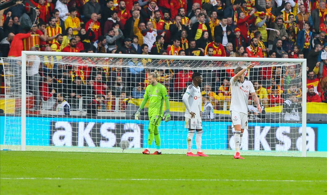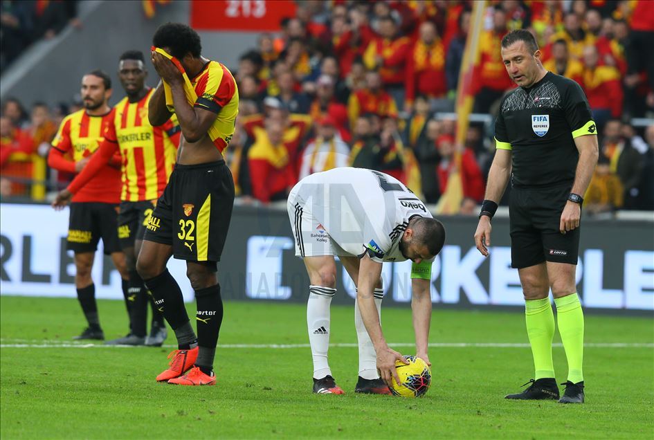 Süper Lig’in 19. haftasında Göztepe ile Beşiktaş, Göztepe’nin yeni stadı Gürsel Aksel Stadyumu’nun açılış maçında karşılaştı. Bir pozisyonda Beşiktaşlı futbolcular, gol sonrası üzüntü yaşadı. ( Mehmet Emin Mengüarslan - Anadolu Ajansı )Mehmet Emin Mengüarslan