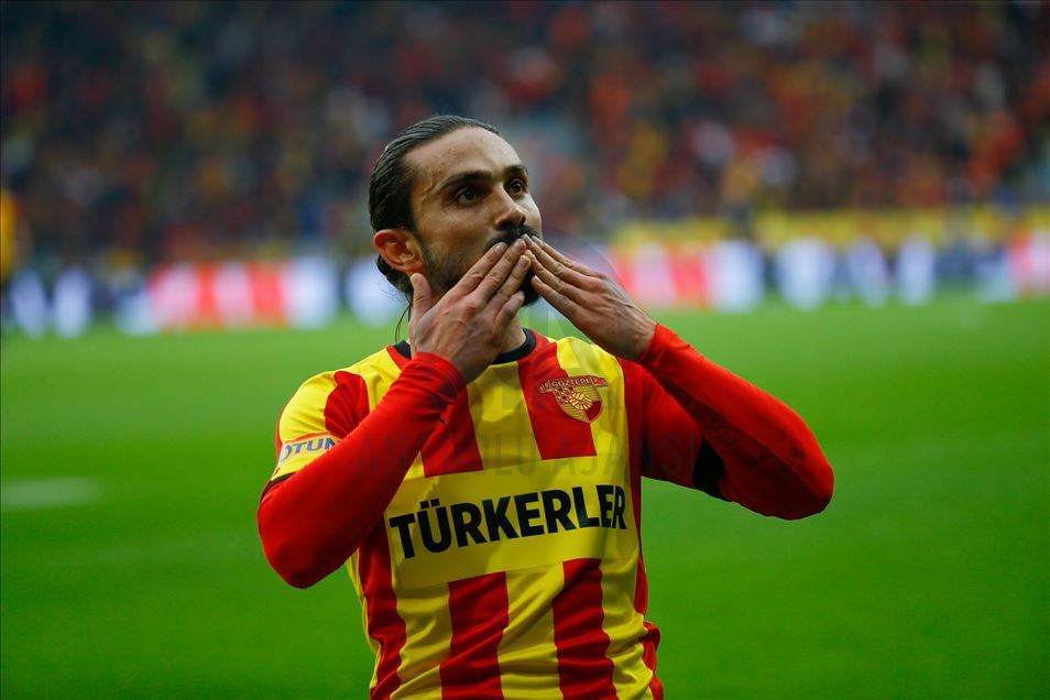 Süper Lig’in 19. haftasında Göztepe ile Beşiktaş, Göztepe’nin yeni stadı Gürsel Aksel Stadyumu’nun açılış maçında karşılaştı. Bir pozisyonda Beşiktaşlı Burak Yılmaz taraftarlarını selamladı. ( Mehmet Emin Mengüarslan - Anadolu Ajansı )Mehmet Emin Mengüarslan