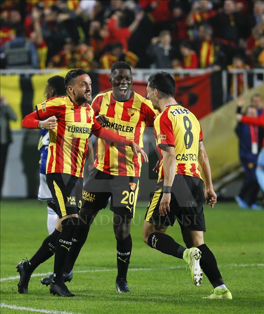 Süper Lig'in 13. haftasında Göztepe ile Fenerbahçe, Bornova Aziz Kocaoğlu Stadı'nda karşılaştı. Göztepe takımı oyuncuları attıkları gol sonrası sevinç yaşadı. ( Evren Atalay - Anadolu Ajansı )Evren Atalay