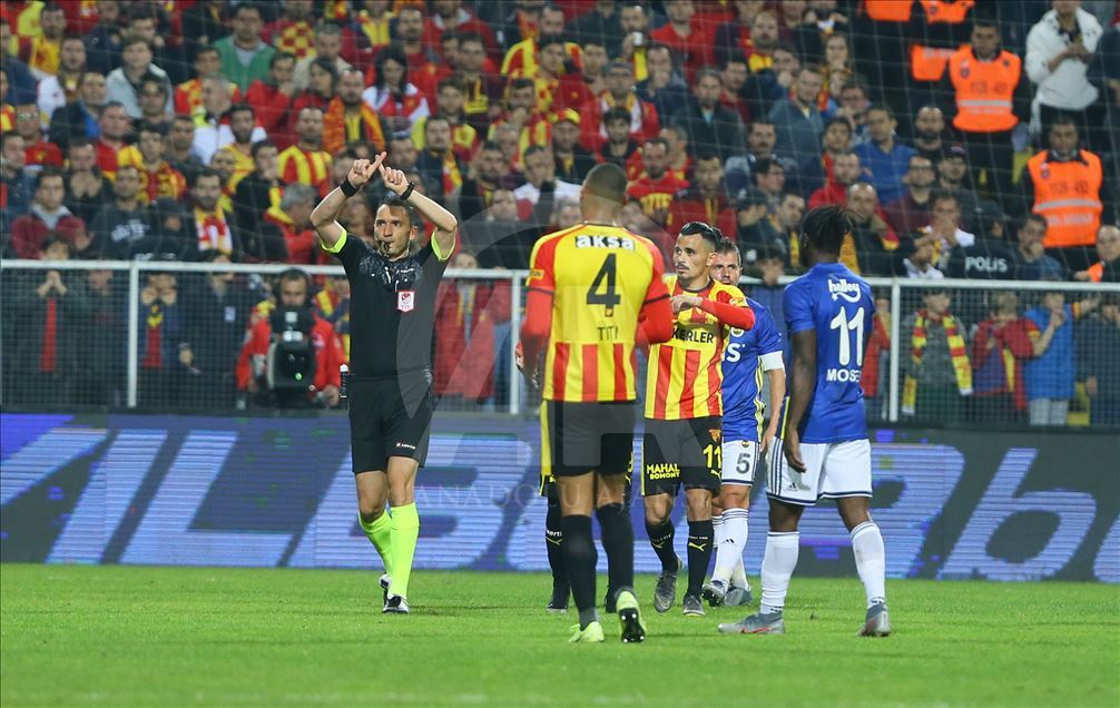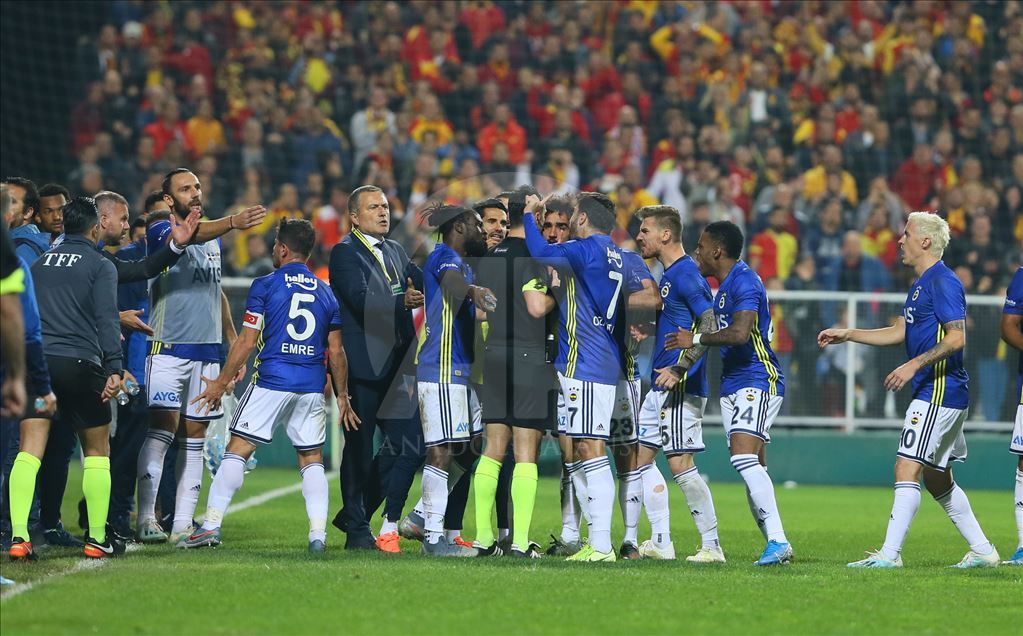 Süper Lig’in 13. haftasında Göztepe ile Fenerbahçe, İzmir Bornova Aziz Kocaoğlu Stadı’nda karşılaştı. Fenerbahçeli futbolcular bir pozisyon sonrası hakem Abdulkadir Bitigen'e itiraz etti. ( Emin Mengüarslan - Anadolu Ajansı )Emin Mengüarslan
