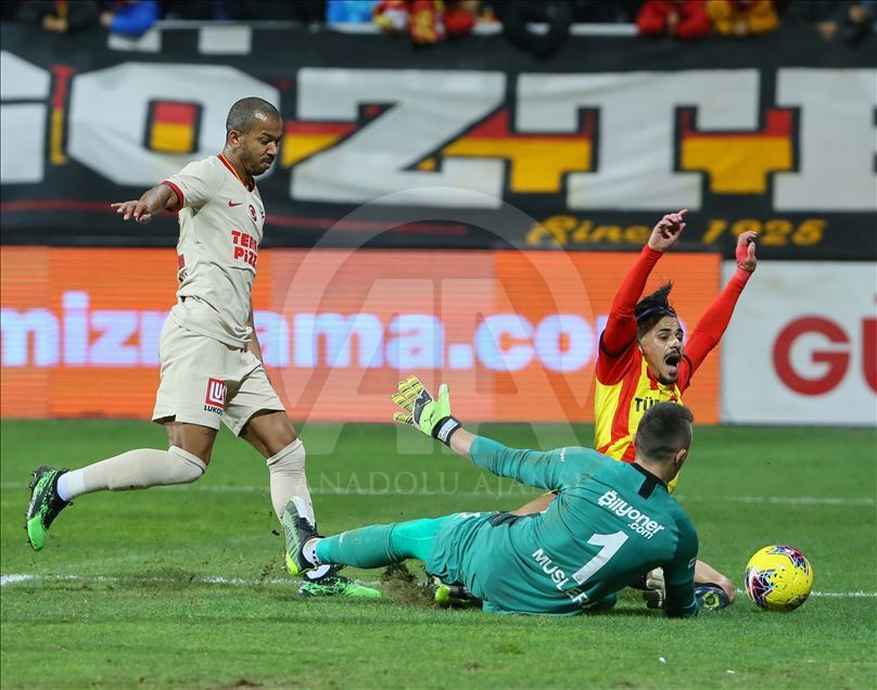 Süper Lig’in 16. haftasında Göztepe ile Galatasaray, İzmir Bornova Aziz Kocaoğlu Stadı’nda karşılaştı. Bir pozisyonda Galatasaray’dan Mariano Filho (solda) ve kaleci Fernando Muslera (ortada) ile Göztepe’den Serdar Gürler (sağda) mücadele etti. ( Emin Mengüarslan - Anadolu Ajansı )Emin Mengüarslan