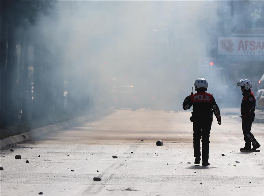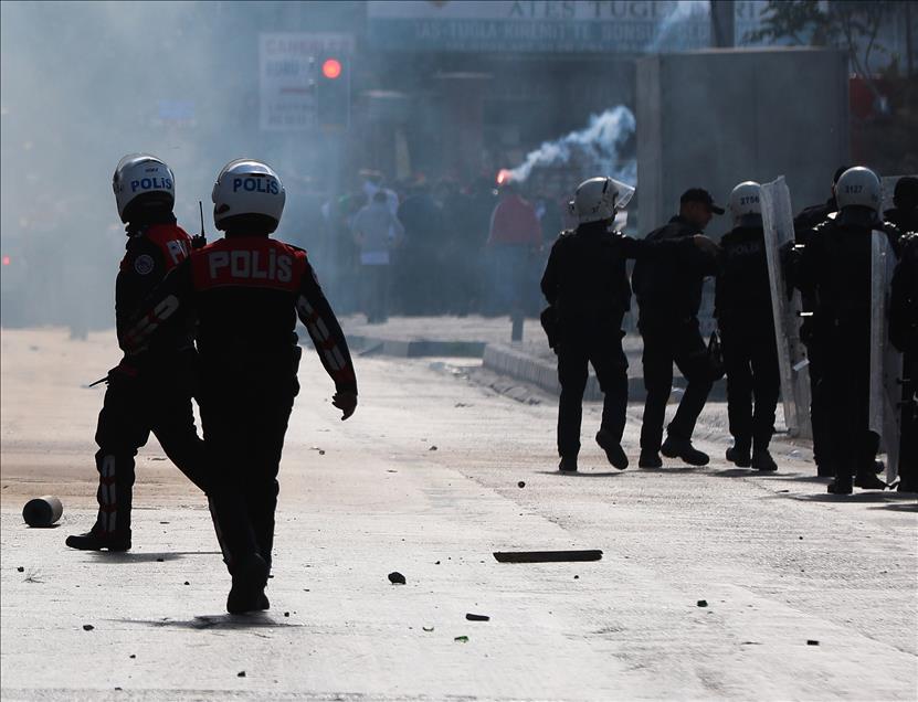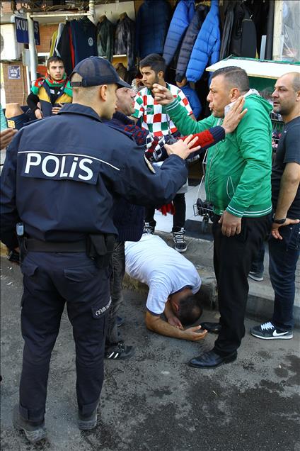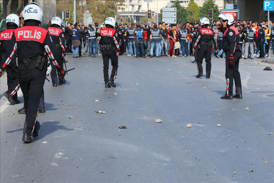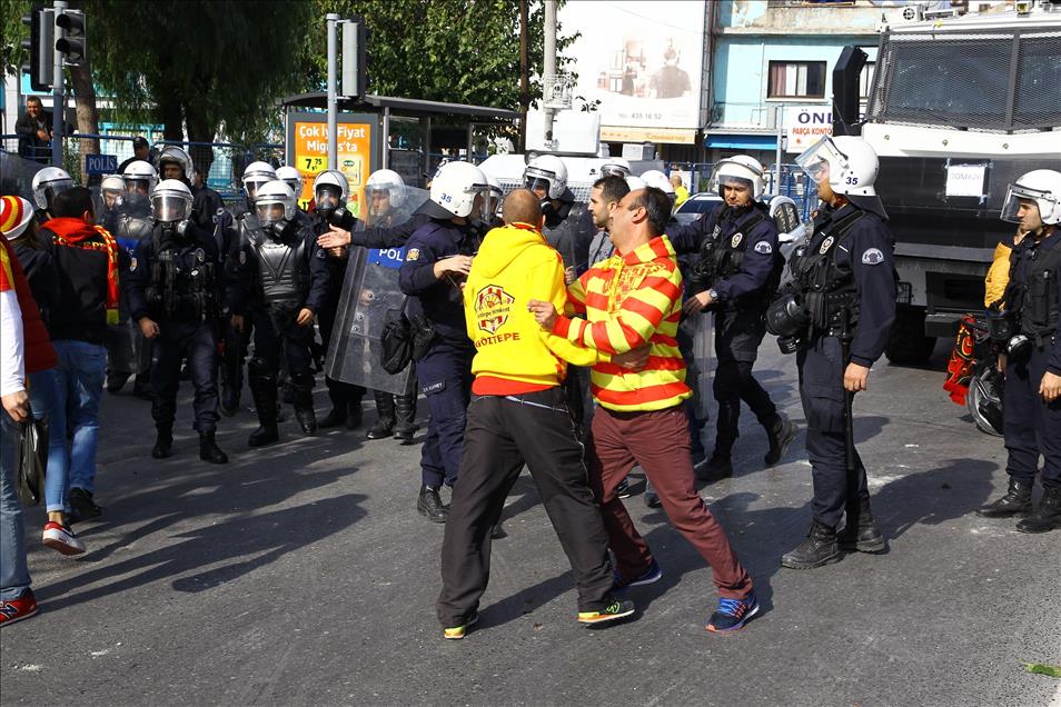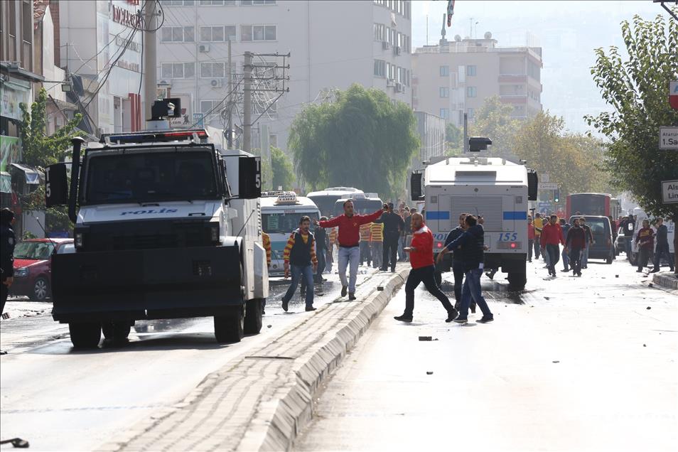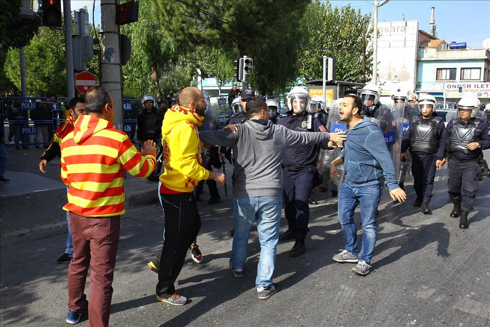 PTT 1. Lig'de Göztepe v Karşıyaka karşılaşması öncesi iki takım taraftarları arasında çıkan olaylara Polis müdahale etti. (Evren Atalay - Anadolu Ajansı)Evren Atalay