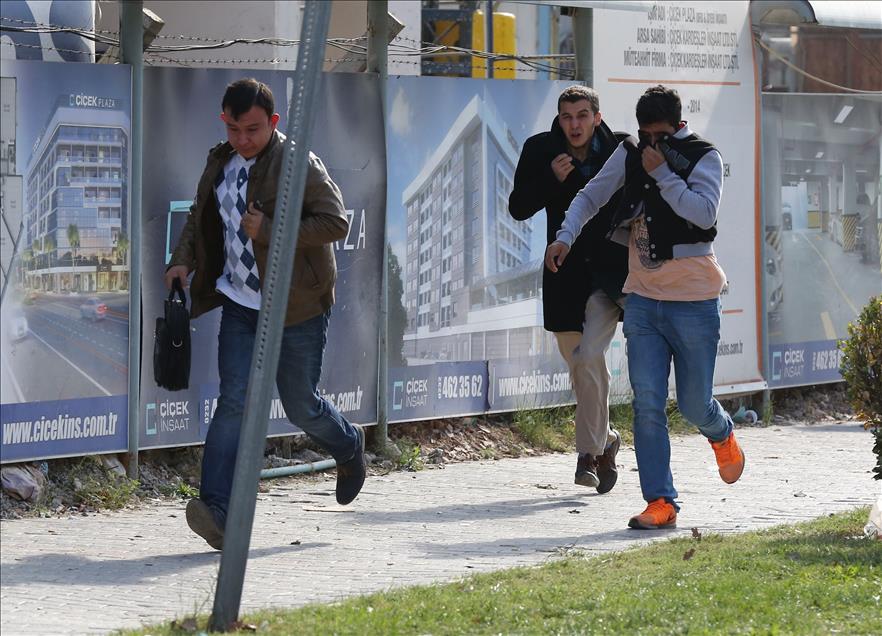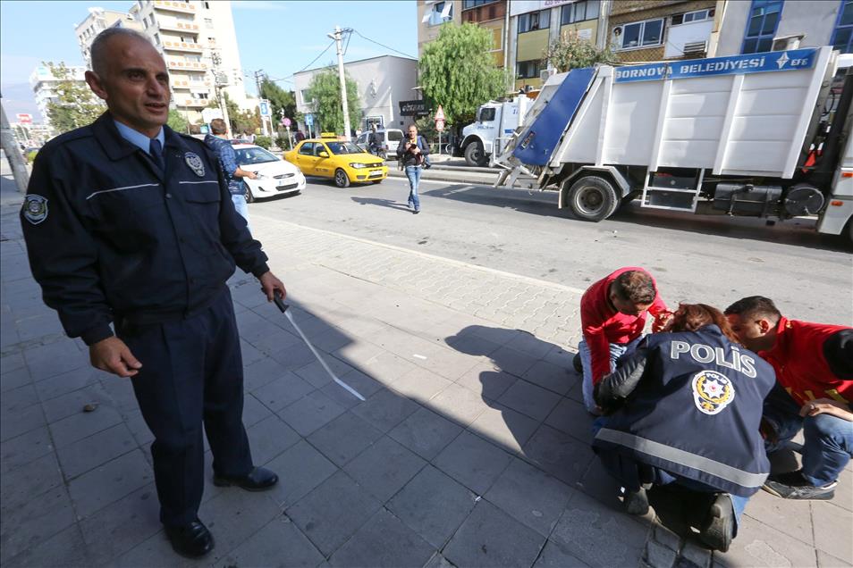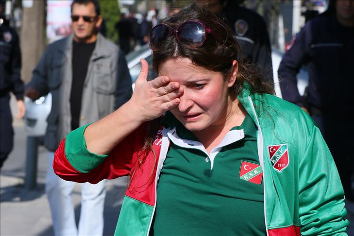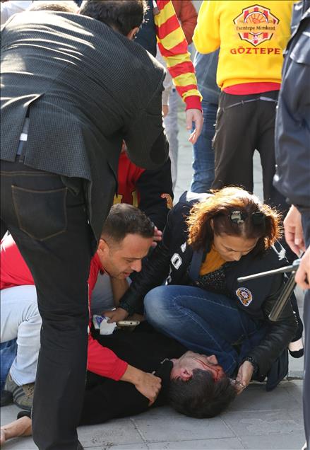PTT 1. Lig'deki Karşıyaka-Göztepe maçına gelen ve İzmir Atatürk Stadı yakınında karşılaşan taraftar grupları birbirlerine yabancı madde attı. Polisin tazyikli su ve biber gazıyla müdahalede bulunduğu gruplar dağıldı. Polis bazı taraftarların üzerinde döner bıçağı yakaladı. (Cem Öksüz - Anadolu Ajansı)Cem Öksüz