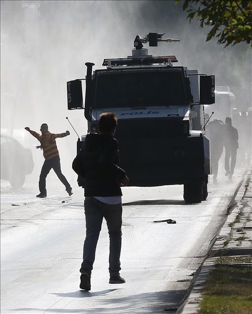 PTT 1. Lig'deki Karşıyaka-Göztepe maçına gelen ve İzmir Atatürk Stadı yakınında karşılaşan taraftar grupları birbirlerine yabancı madde attı. Polisin tazyikli su ve biber gazıyla müdahalede bulunduğu gruplar dağıldı. (Cem Öksüz - Anadolu Ajansı)Cem Öksüz