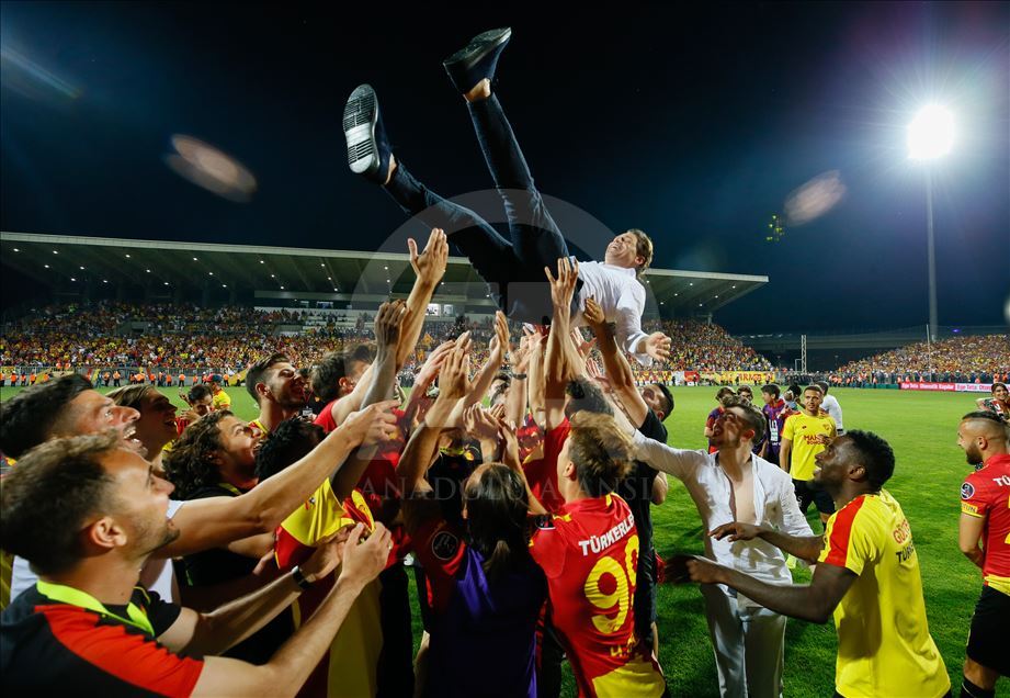 Spor Toto Süper Lig’in son haftasında Göztepe ile MKE Ankaragücü, İzmir Bornova Stadı’nda karşılaştı. Müsabakada rakibini 2-1 mağlup eden Göztepe, ligde kalmayı başardı. Karşılaşma sonrası Göztepeli futbolcular Göztepe Teknik Direktörü Tamer Tuna’yı havaya attı. ( Emin Mengüarslan - Anadolu Ajansı )Emin Mengüarslan