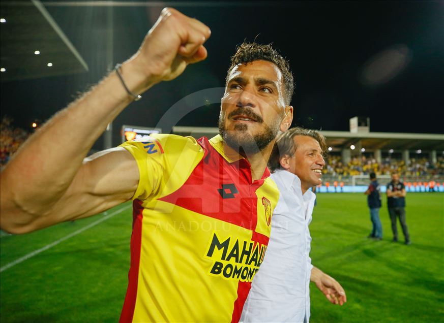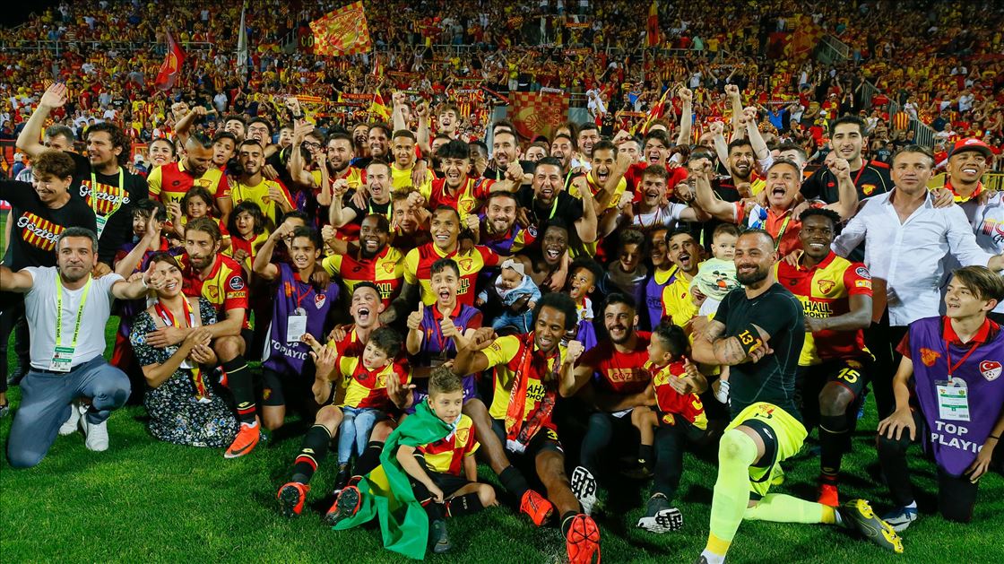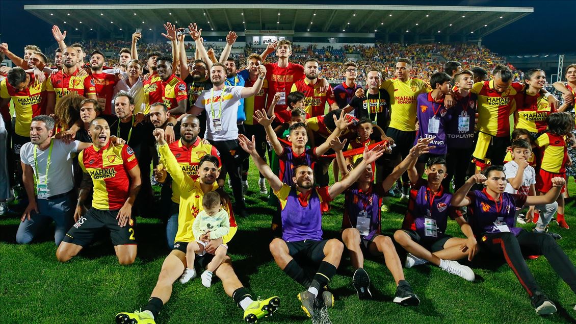 Spor Toto Süper Lig’in son haftasında Göztepe ile MKE Ankaragücü, İzmir Bornova Stadı’nda karşılaştı. Müsabakada rakibini 2-1 mağlup eden Göztepe, ligde kalmayı başardı. Karşılaşma sonrası Göztepeli futbolcular sevinç yaşadı. ( Emin Mengüarslan - Anadolu Ajansı )Emin Mengüarslan