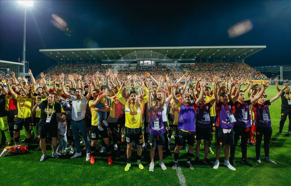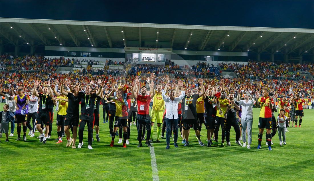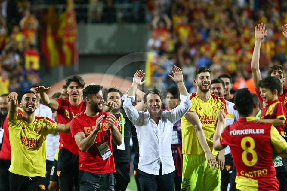 Spor Toto Süper Lig’in son haftasında Göztepe ile MKE Ankaragücü, İzmir Bornova Stadı’nda karşılaştı. Müsabakada rakibini 2-1 mağlup eden Göztepe, ligde kalmayı başardı. Karşılaşma sonrası Göztepeli futbolcular ve teknik heyet sevinç yaşadı. ( Emin Mengüarslan - Anadolu Ajansı )Emin Mengüarslan