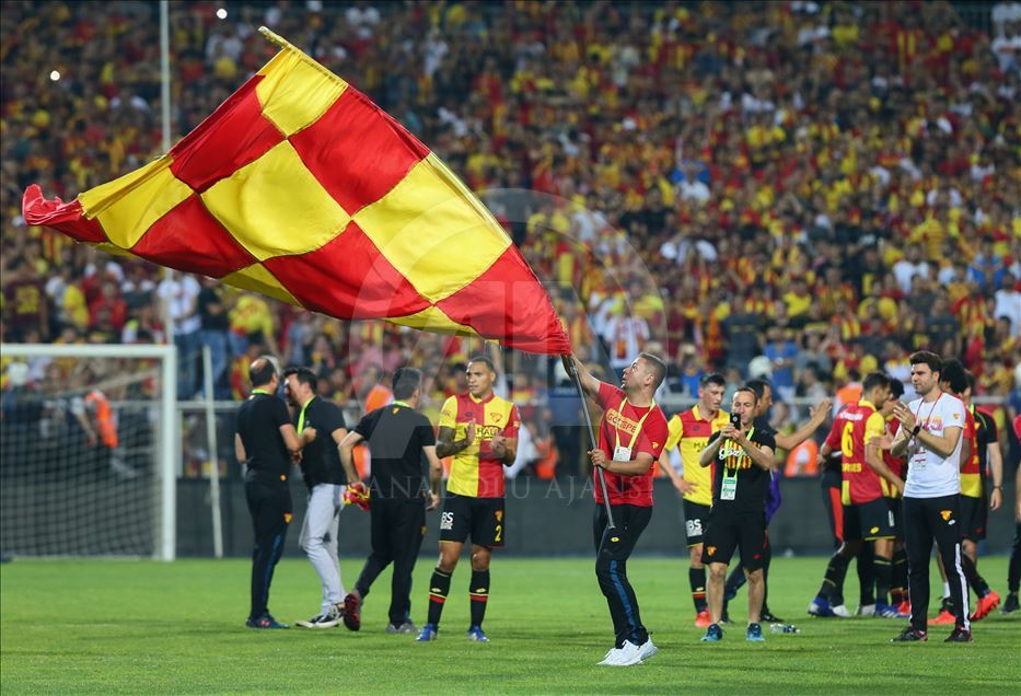 Spor Toto Süper Lig’in son haftasında Göztepe ile MKE Ankaragücü, İzmir Bornova Stadı’nda karşılaştı. Müsabakada rakibini 2-1 mağlup eden Göztepe, ligde kalmayı başardı. Karşılaşma sonrası Göztepeli taraftarlar sevinç yaşadı. ( Emin Mengüarslan - Anadolu Ajansı )Emin Mengüarslan
