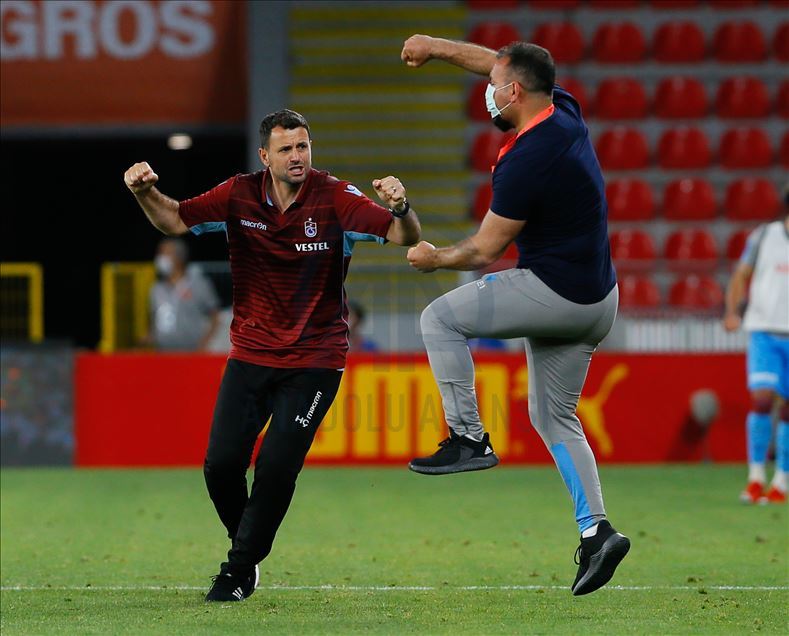 Süper Lig'in 27. haftasında Göztepe ve Trabzonspor takımları Gürsel Aksel Stadında karşılaştı. Trabzonspor Teknik Direktörü Hüseyin Çimşir (solda) takımının attığı gol sonrası sevinç yaşadı. ( Ömer Evren Atalay - Anadolu Ajansı )Ömer Evren Atalay