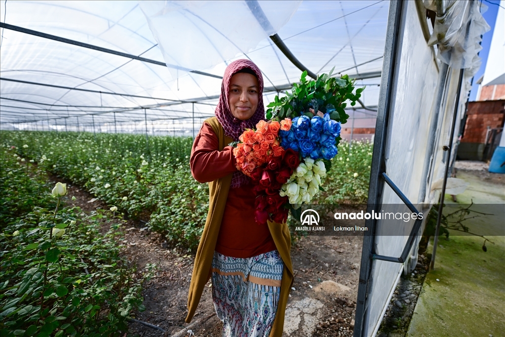 Türkiye'nin kesme çiçek üretim merkezlerinden İzmir'in Menderes ilçesinde, 14 Şubat Sevgililer Günü öncesi hasat yoğunluğu yaşanıyor.