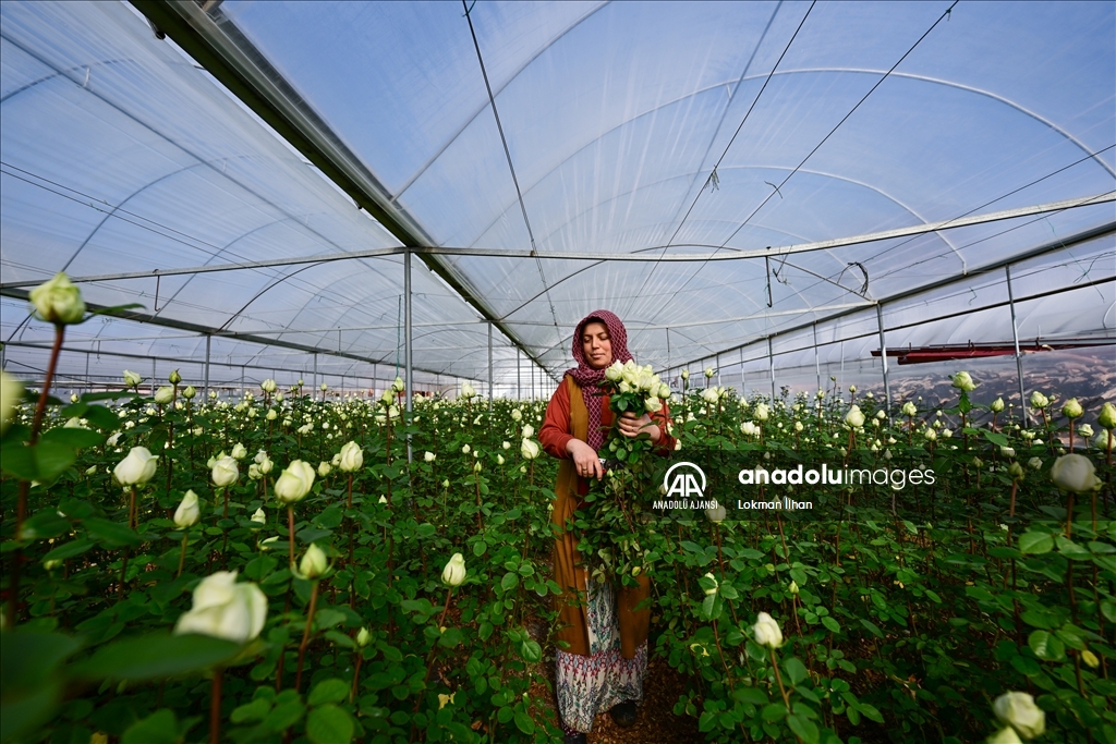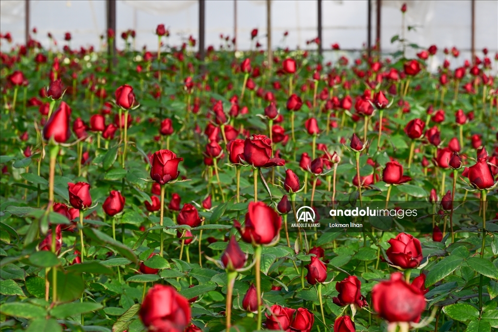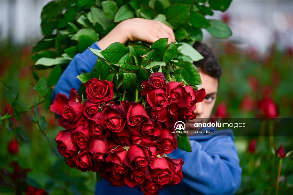 Türkiye'nin kesme çiçek üretim merkezlerinden İzmir'in Menderes ilçesinde, 14 Şubat Sevgililer Günü öncesi hasat yoğunluğu yaşanıyor. Hasat için sabah saatlerinde seraya giren üreticiler, öğleden sonraya kadar çiçek kesiyor. Kesilen çiçekler mezatta satıldıktan sonra ülkenin dört bir yanındaki müşterilere ulaşıyor. Güller, iç pazardaki talebi karşılamasının yanı sıra yurt dışına da ihraç ediliyor. ( Lokman İlhan - Anadolu Ajansı )Lokman İlhan
