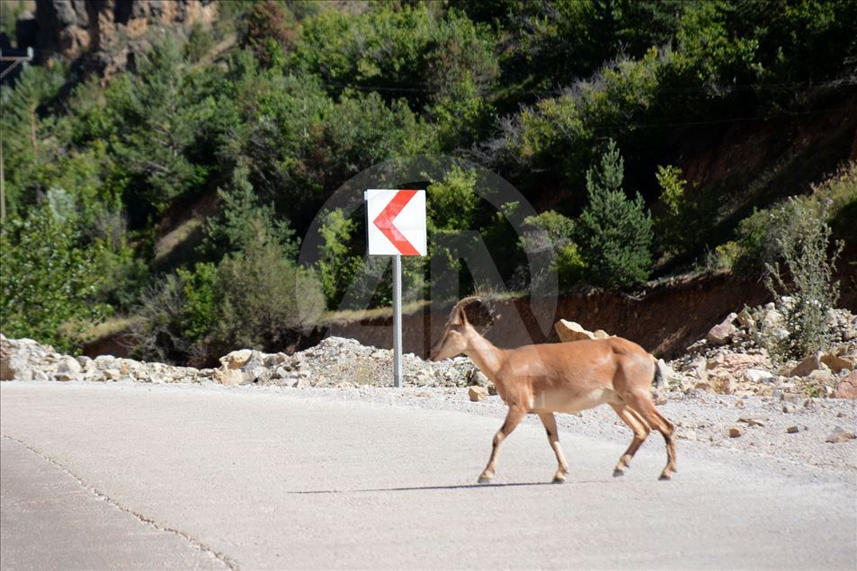 Koruma altında bulunan ve kaçak avlanması yasak olan yaban keçilerinin popülasyonu Gümüşhane'de artıyor. Gümüşhane kent merkezine yaklaşık 20 kilometre uzaklıktaki kent kırsalında objektiflere takılan ve kaçak avlanılması durumunda 22 bin 660 liradan başlayan para cezası uygulanan dağ keçileri, zaman zaman indikleri karayolundan da gözlemlenebiliyor. ( Muhammet Çelik - Anadolu Ajansı )Muhammet Çelik