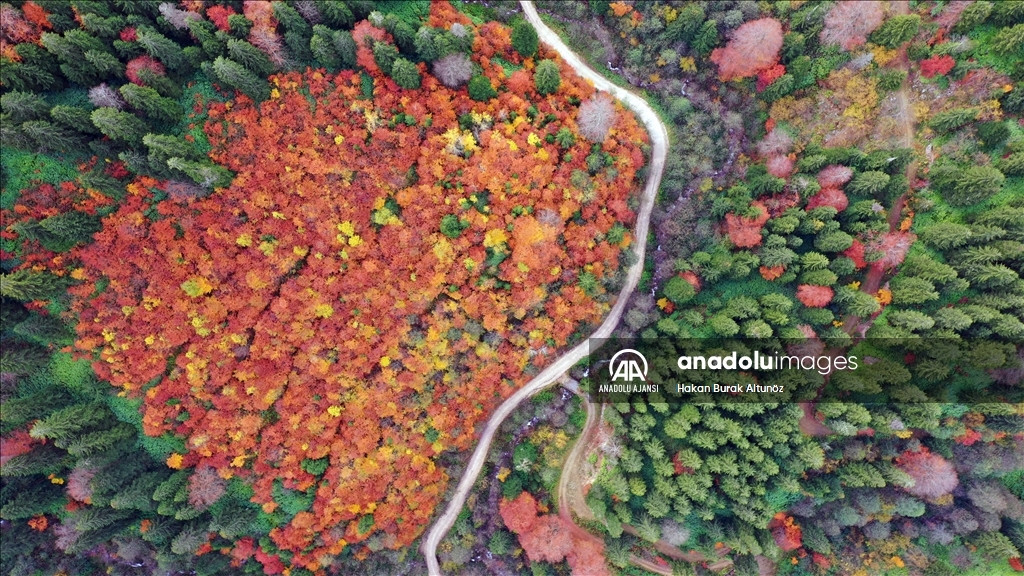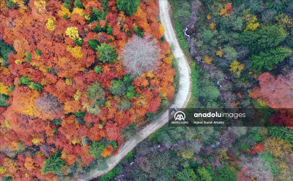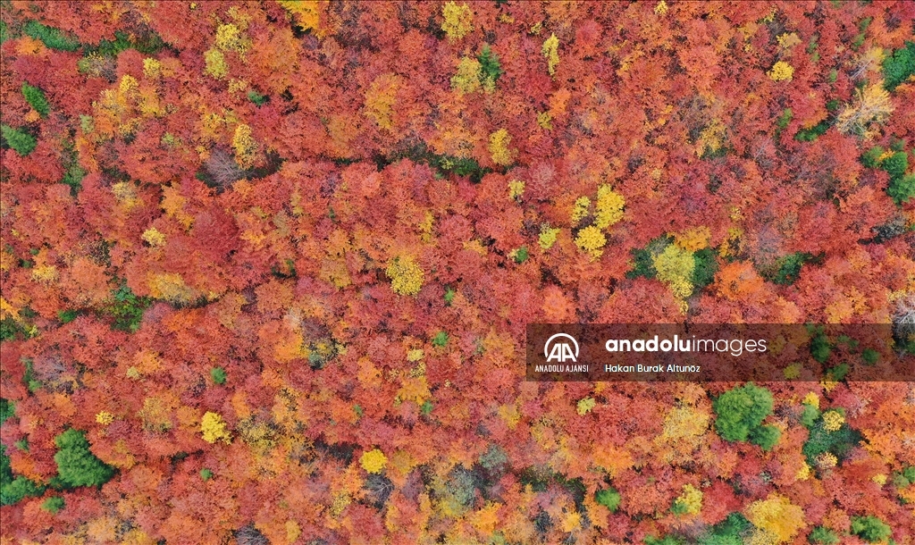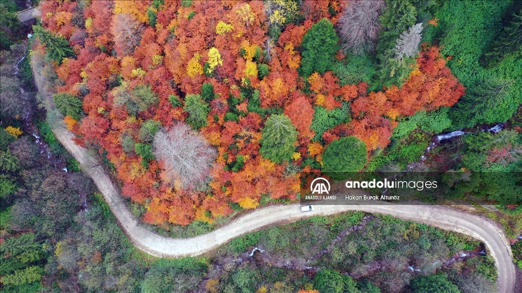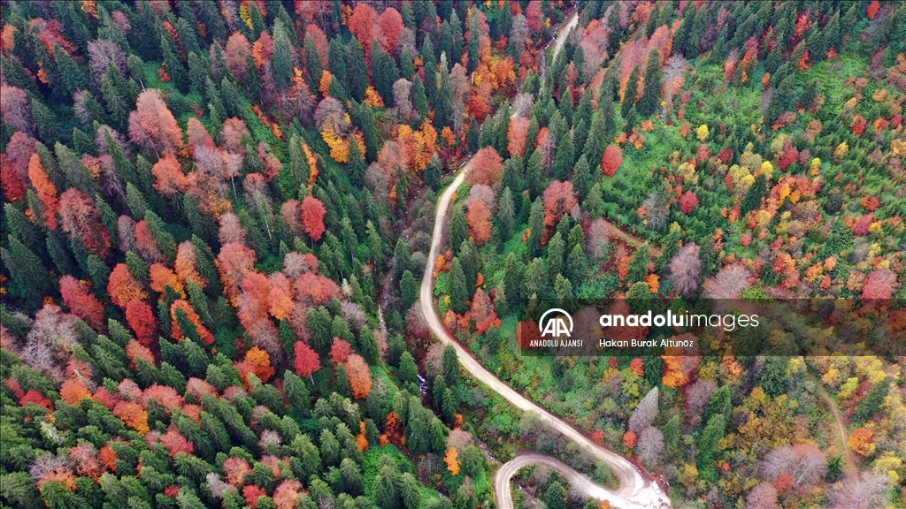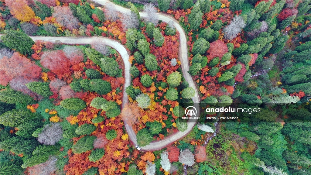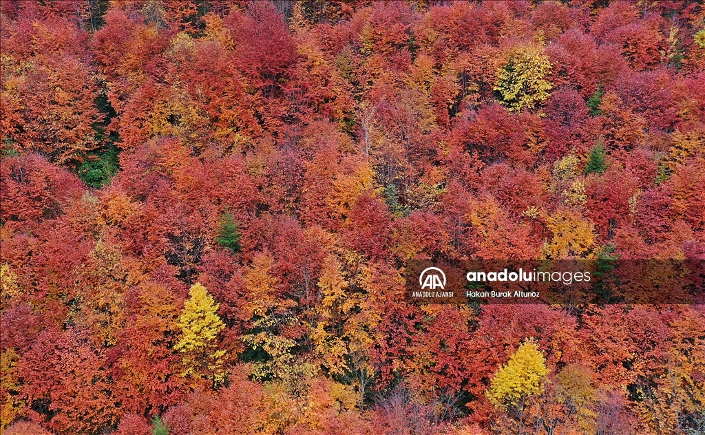 Gümüşhane'nin Kürtün ilçesindeki "Örümcek Ormanları" sonbaharın tüm renklerini barındırıyor. İlçe merkezindeki Kürtün Barajı çevresinde yer alan ormanlık alanlar da güz renklerine büründü.