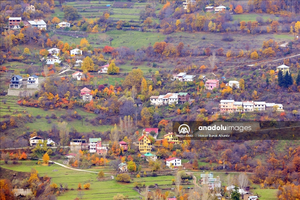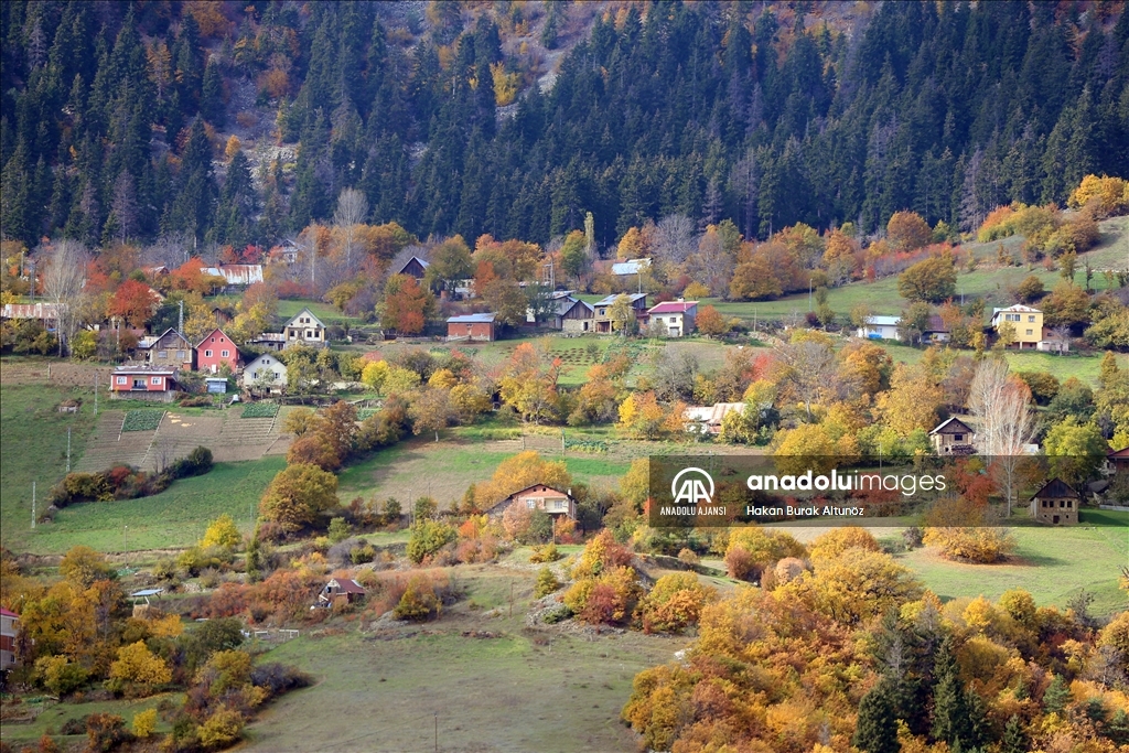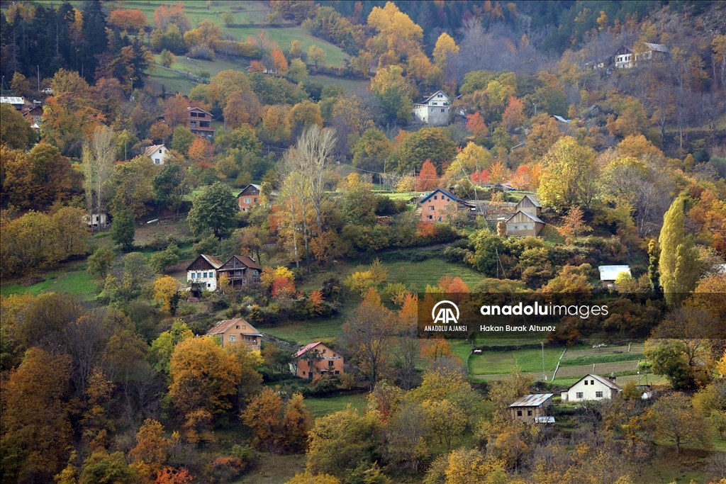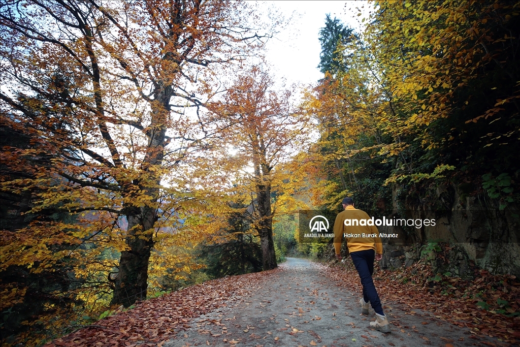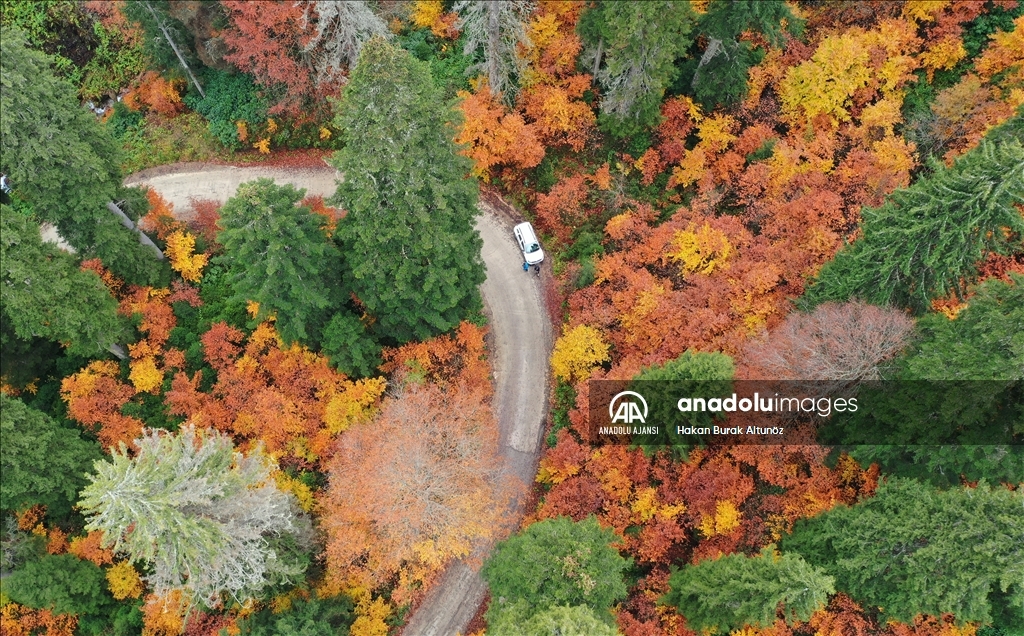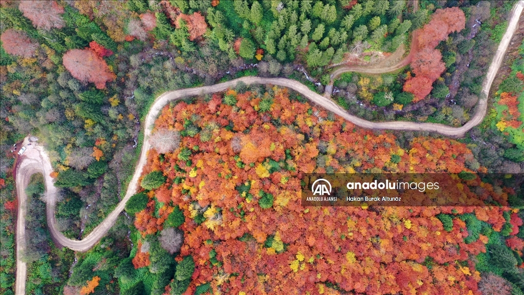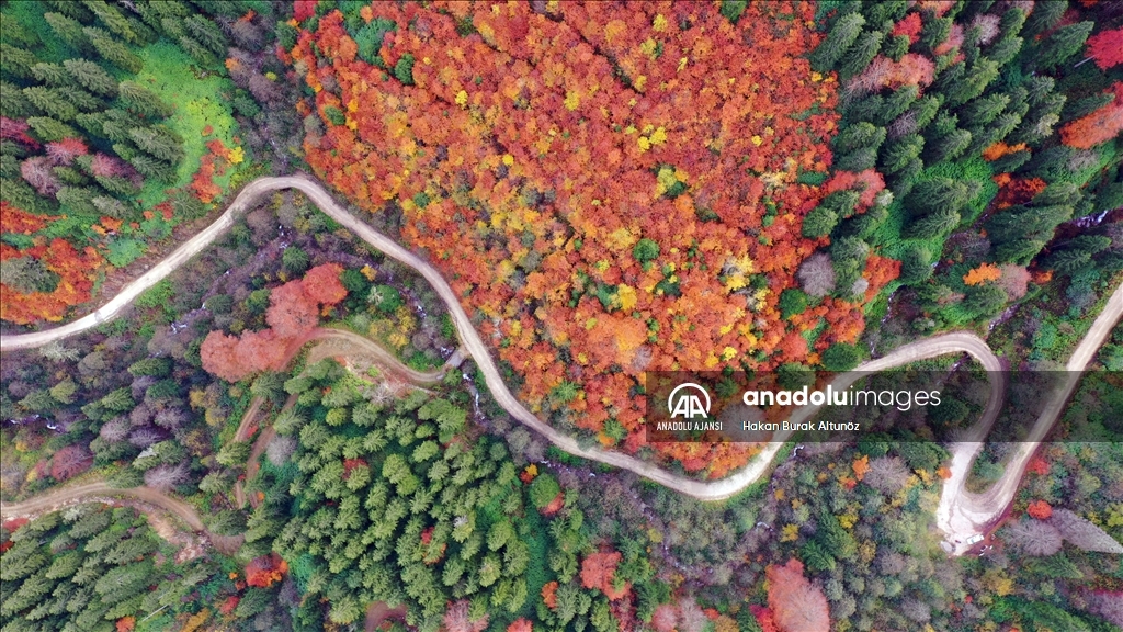 Gümüşhane'nin Kürtün ilçesindeki "Örümcek Ormanları" sonbaharın tüm renklerini barındırıyor. İlçe merkezindeki Kürtün Barajı çevresinde yer alan ormanlık alanlar da güz renklerine büründü.