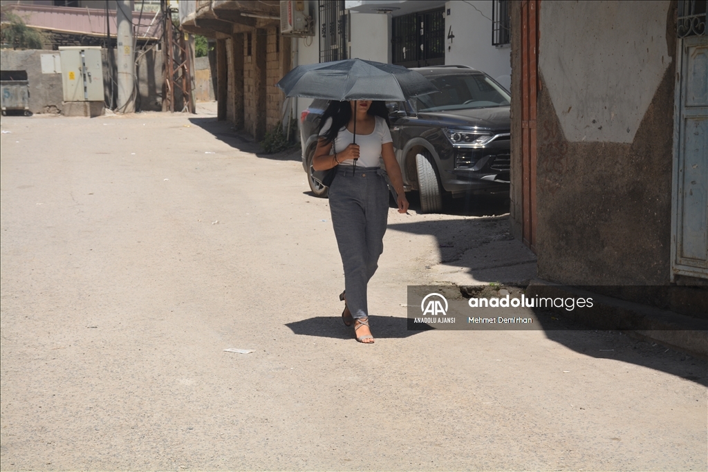Güneydoğu Anadolu Bölgesi'nde 40 dereceyi aşan sıcak hava, yaşamı olumsuz etkiliyor. Şırnak'ın Silopi ilçesinde cadde ve sokaklarda öğle saatlerinde sakinlik gözlenirken bazı vatandaşlar şemsiye ile sıcaktan korunmaya çalıştı.