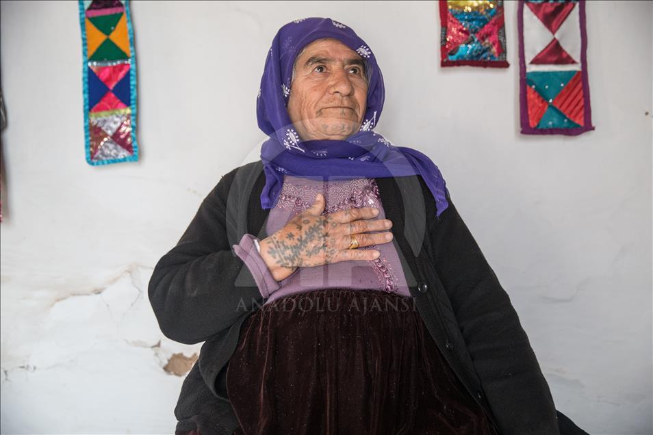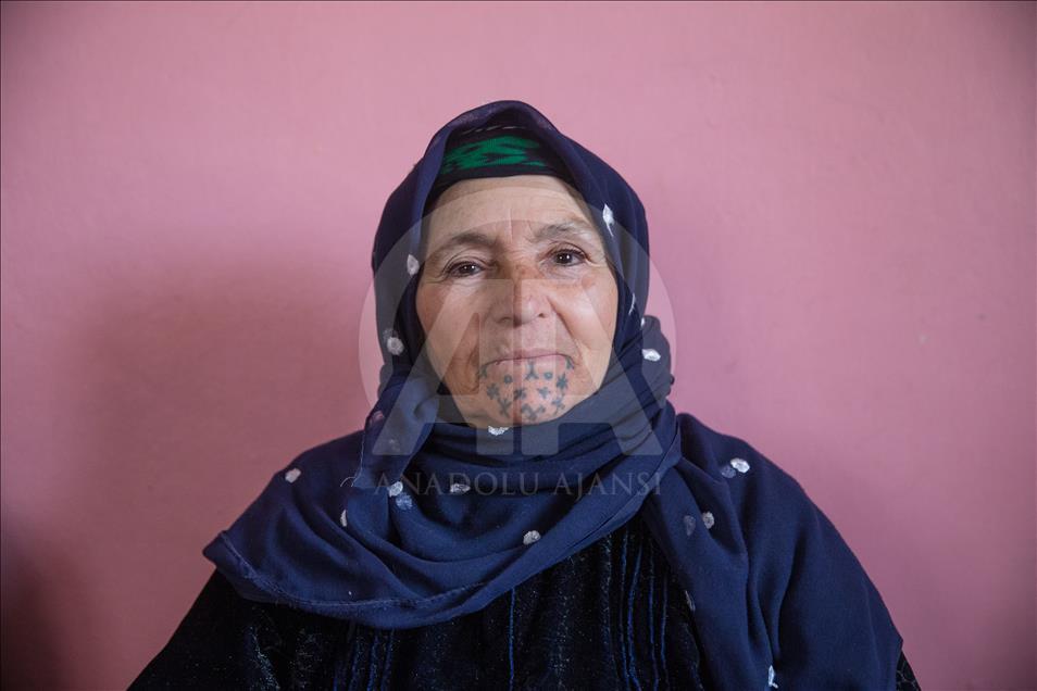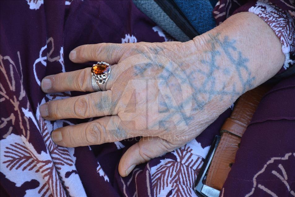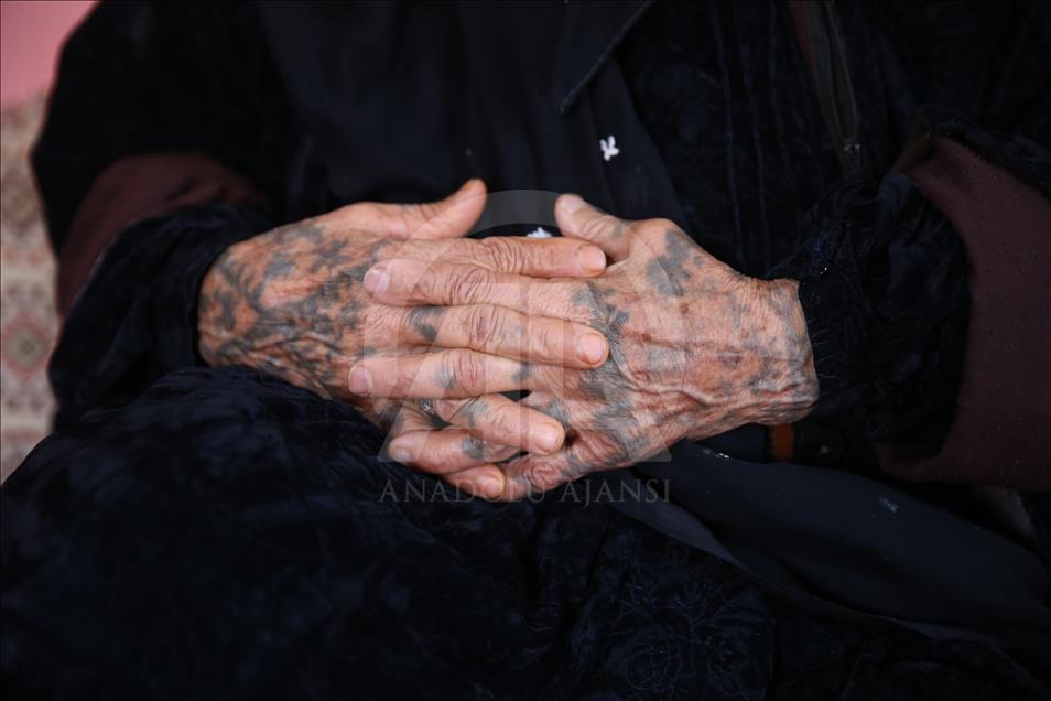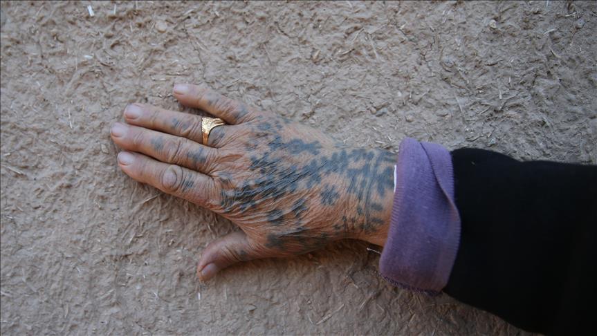 Güneydoğu Anadolu Bölgesi'nin Suriye sınırına yakın yerleşimlerinde, özellikle kadınların güzel görünmek amacıyla el ve yüzlerine yaptırdıkları "dek" adıyla bilinen yöresel dövmelere gençler ilgi göstermiyor. Şanlıurfa ve çevresinde 60 yaş ve üzeri birçok kadının yüz ve ellerinde görülen dövmeler, artık neredeyse tarihe karışıyor. Kısas Mahallesi'nde yaşayan 67 yaşındaki Senem Aydoğdu (fotoğrafta), el ve çenesindeki dövmeyi "nazardan korunmak" için yaptırdığını söyledi. ( Halil Fidan - Anadolu Ajansı )Halil Fidan