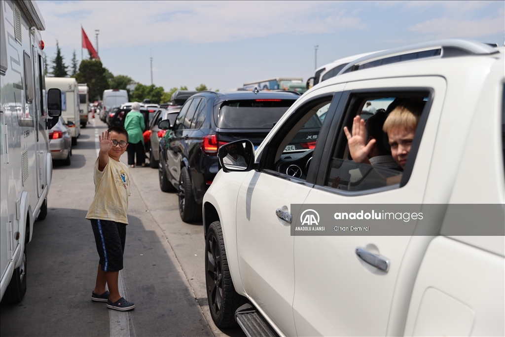 Yıllık izinlerini geçirmek için memleketlerine gelen gurbetçiler, yaşadıkları ülkelere dönüyor. Kapıkule Sınır Kapısı başta olmak üzere Edirne'deki diğer sınır kapılarından dönüş yoluna geçen gurbetçiler, özlem ve sevinçle geldikleri Türkiye'den ayrılmanın burukluğunu yaşıyor. ( Cihan Demirci - Anadolu Ajansı )Cihan Demirci