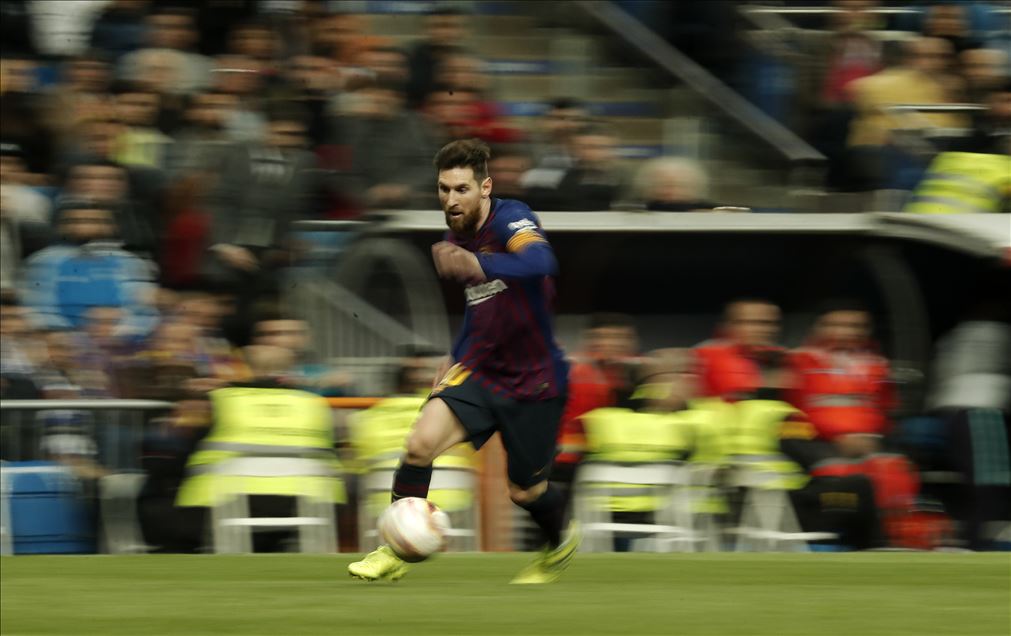 İspanya Birinci Futbol Ligi (La Liga) 26. hafta mücadelesinde, Real Madrid ile Barcelona takımları Madrid’deki Santiago Bernabeu Stadı’nda karşı karşıya geldi. Karşılaşmada, Barcelona takımının futbolcusu Lionel Messi de (fotoğrafta) forma giydi.