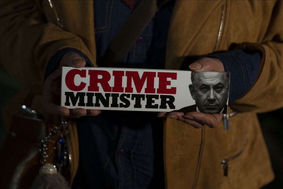 İsrail’in başkenti Tel Aviv’de toplanan bir grup, hakkında yolsuzluk soruşturması açılan İsrail Başbakanı Binyamin Netanyahu'yu karşıtı gösteri düzenledi. Göstericiler, Netanyahu'yu kınayan dövizler taşıdı.