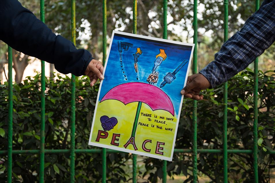 Hindistan ile Pakistan arasındaki yaşanan son gerginlikler dolayısıyla Hindistan'ın başkenti Yeni Delhi'de savaş karşıtı gösteri düzenlendi. Gösteride, 'Savaşa Hayır De', 'Savaş Çözüm Değil', 'Savaş Pahalıdır, Barış İse Paha Biçilemez' yazılı dövizlere yer verildi. ( Javed Sultan - Anadolu Ajansı )Javed Sultan