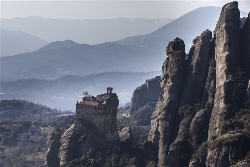 Kayalıkların zirvesine inşa edilen çok sayıda manastırın yer aldığı Yunanistan'ın Trikala Bölgesi'ndeki Meteora kenti, ziyaretçilerin ilgisini çekiyor. Milyonlarca yıl önce yoğun su hareketleri, ısı değişiklikleri ve depremlerin yarattığı aşınma sonucu bazıları 550 metre yüksekliği bulan düz şekilli sarp kayalıklar üzerine inşa edilen irili ufaklı 20'den fazla manastırdan günümüze 2'si rahibelere ait olmak üzere 6 manastır ulaşabilmiş durumda. Her yıl çok sayıda yerli ve yabancı turistin ziyaret ettiği Meteora, 1988 yılında UNESCO tarafından Dünya Mirası Listesi'ne eklendi. ( Ayhan Mehmet - Anadolu Ajansı )Ayhan Mehmet