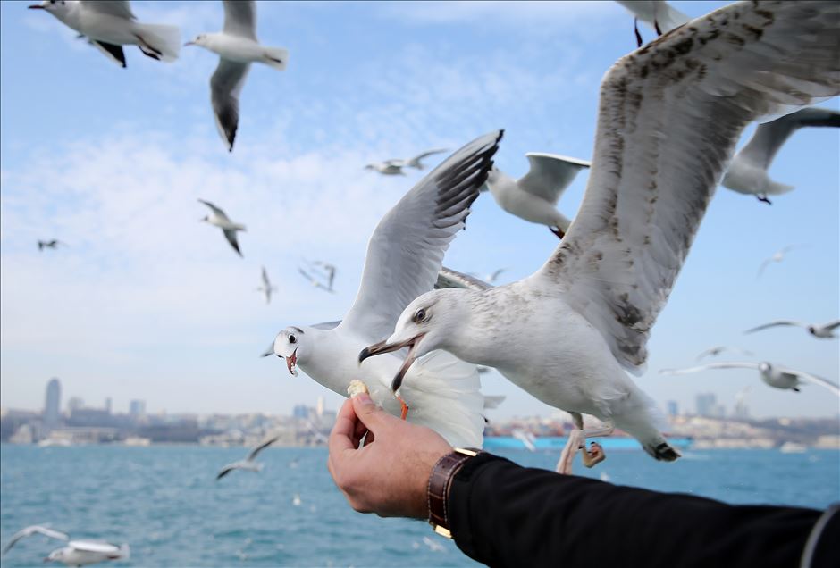 İstanbul'da güneşli havayı fırsat bilen vatandaşlar, Salacak sahili'nde yürüyüş yaparak güzel havanın tadını çıkardı. Bazı vatandaşlar da sahile yakın uçan martılara elleriyle simit verdi. ( İsa Terli - Anadolu Ajansı )İsa Terli