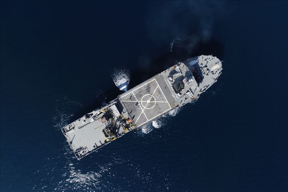 Akdeniz, Ege Denizi ve Karadeniz'de 103 savaş gemisinin katılımıyla eş zamanlı icra edilen Mavi Vatan-2019 Tatbikatı, Deniz Kuvvetleri Komutanlığınca planlanan senaryo ve jenerik coğrafyaya istinaden 7'nci gününde devam ediyor. Tatbikatta TCG Bayraktar gemisinde bulunan SİHA Bayraktar TB2'den alınan görüntüler, F-16 savaş uçaklarıyla paylaşıldı. Verilen koordinatlar ise uçaklar tarafından simüle olarak bombalandı. ( Evren Atalay - Anadolu Ajansı )Evren Atalay