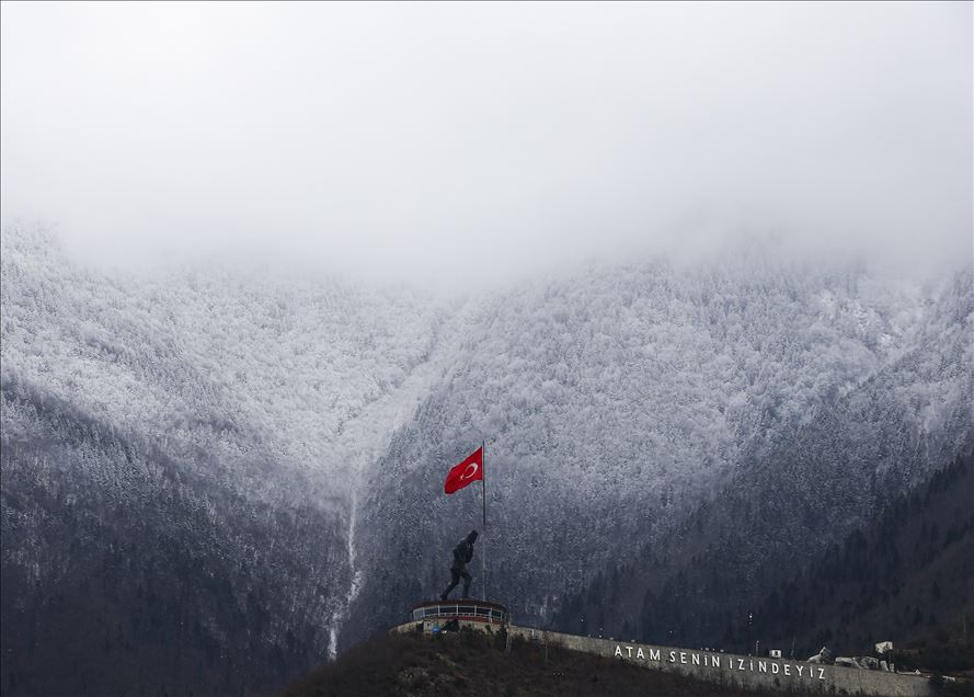 Artvin'in yüksek kesimlerinde kar yağışı etkili oldu. Atatepe, sis ve beyaz örtü ile güzel görüntü oluşturdu.