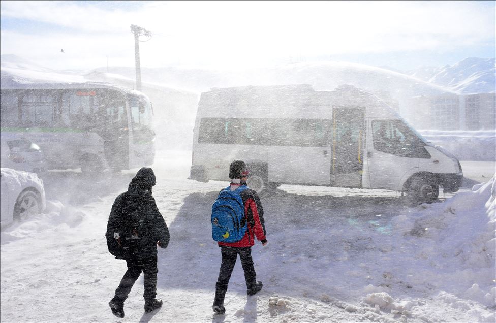 Kar yağışı ve tipinin yaşamı olumsuz etkilediği Bitlis'te, 156 yerleşim yerine ulaşım sağlanamıyor. Sabah saatlerinde kentte etkili olan fırtına nedeniyle öğrenciler, vatandaşlar ve sürücüler zor anlar yaşadı. ( Şener Toktaş - Anadolu Ajansı )Şener Toktaş