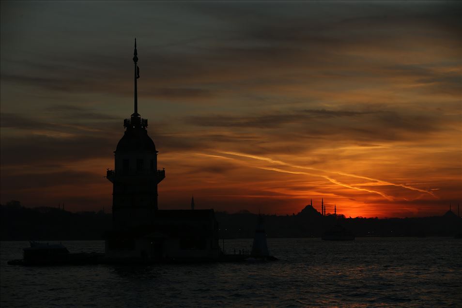 İstanbul'da Üsküdar sahilinde gün batımı güzel görüntüler oluşturdu. ( Orhan Akkanat - Anadolu Ajansı )Orhan Akkanat