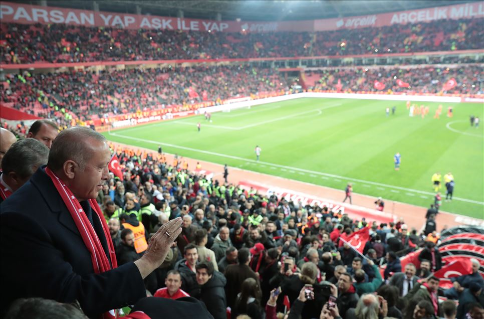 Türkiye Cumhurbaşkanı Recep Tayyip Erdoğan, Yeni Eskişehir Stadı'nda, 2020 UEFA Avrupa Futbol Şampiyonası Elemeleri'ndeki Türkiye - Moldova maçını izledi. ( Cumhurbaşkanlığı / Murat Çetinmühürdar - Anadolu Ajansı )Cumhurbaşkanlığı / Murat Çetinmühürdar